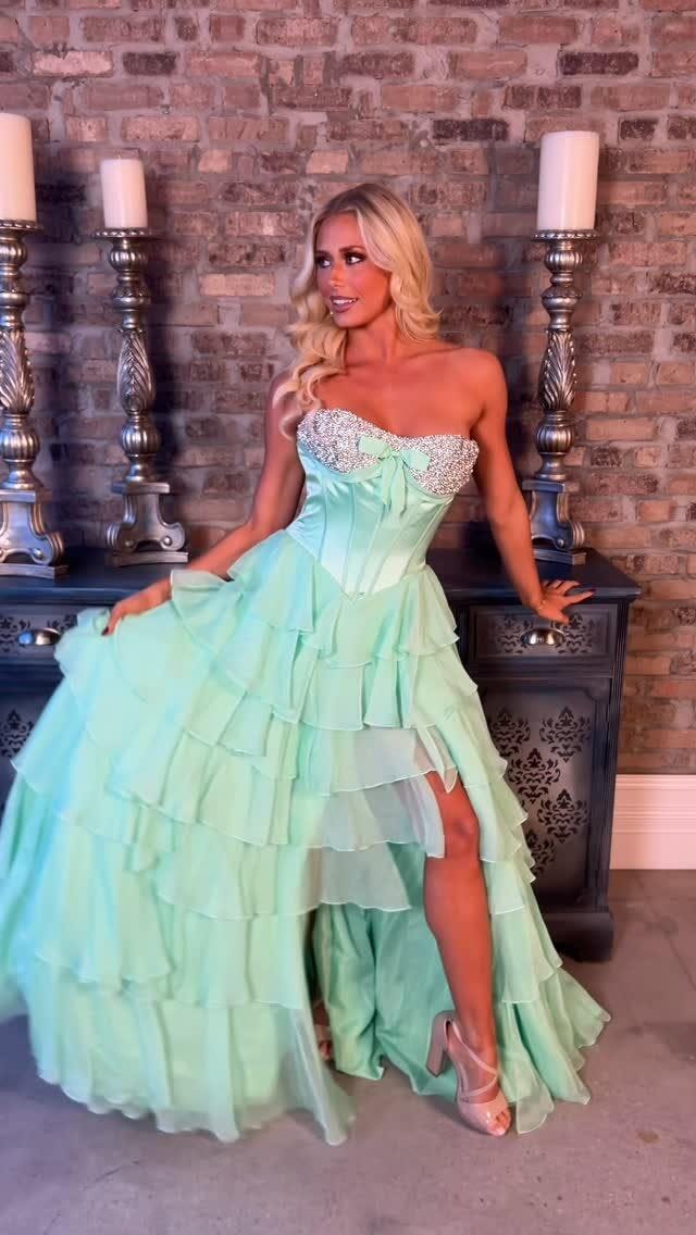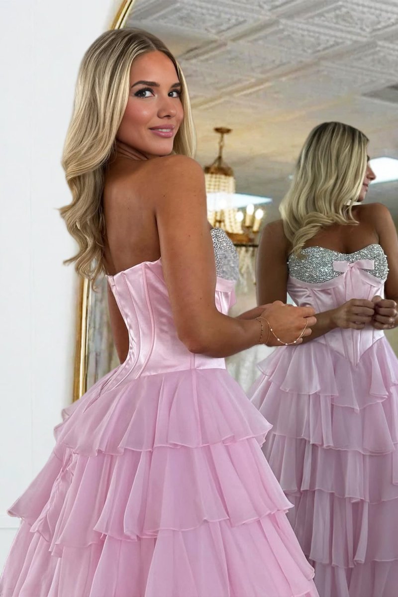 Ellira is a romantic and refined choice from our evening dresses collection. Her flowing A-line silhouette in soft chiffon drapes gracefully, accented with delicate ruffles and sparkling beading that catch the light with every movement. A charming bowknot adds a playful, feminine touch, while the sweetheart neckline provide a flattering, adjustable fit. Perfect for prom nights or formal occasions, Ellira stands out among formal dresses with her timeless elegance and graceful charm.