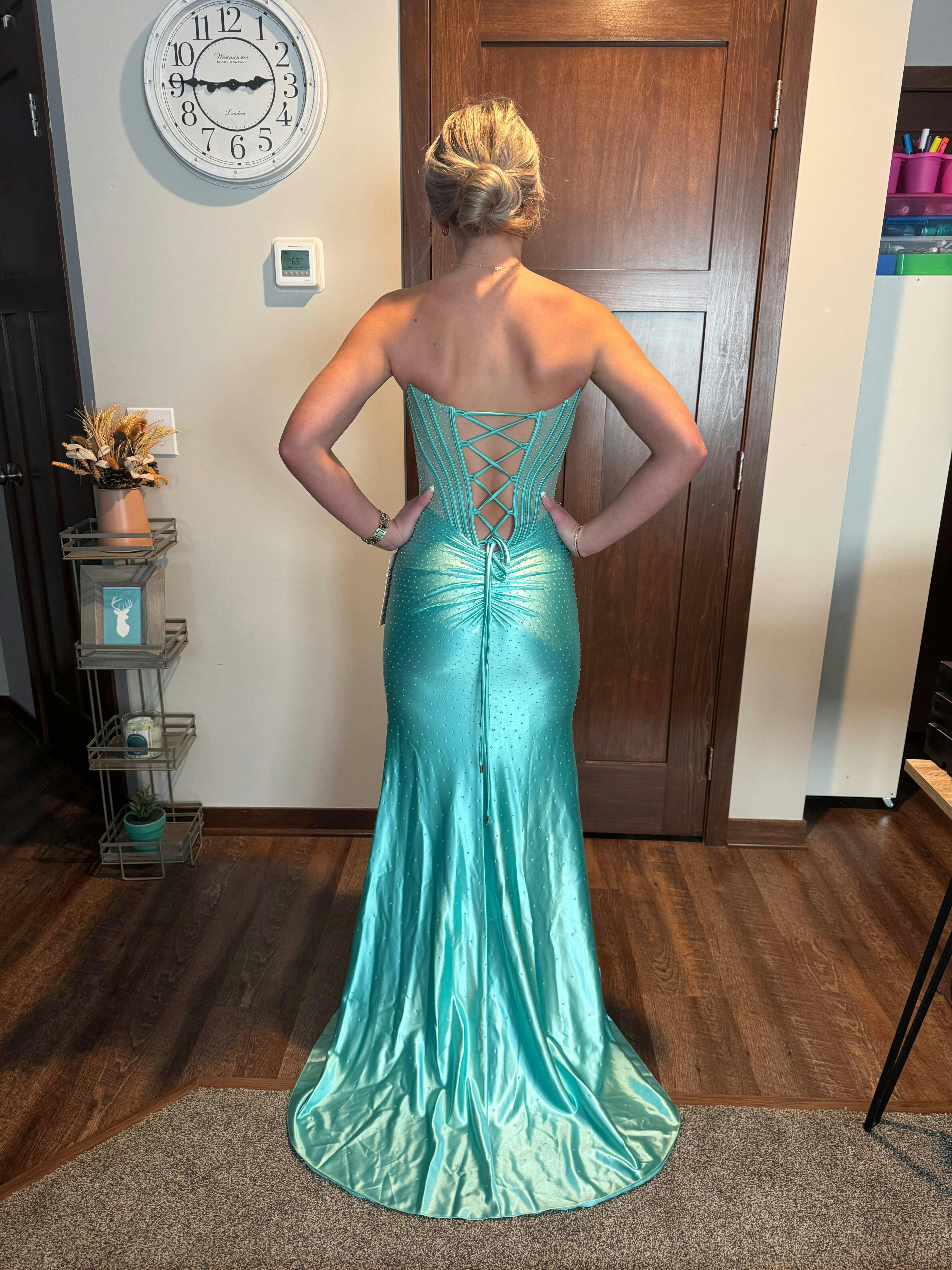 Command the spotlight in this green mermaid dress crafted from smooth satin. The scoop neckline elegantly frames the décolletage, while the sleeveless design keeps the silhouette sleek and modern. Sparkling beading along the bodice adds subtle glamour, and a daring slit enhances movement with every step. The lace-up back ensures a flawless, adjustable fit. Perfect for prom nights, gala events, or red-carpet occasions, this dress combines timeless sophistication with contemporary flair, making it a standout among formal dresses and evening dresses.