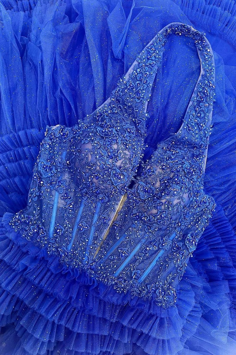 Step into a world of elegance with the Red Tulle Appliques Halter Ruffle Tiered Ball Gown. This enchanting A-Line gown is crafted from soft tulle, creating a dreamy silhouette that flows beautifully with every step. It is available in an array of colors including Grey, Pink, Magenta, White, Black, Lavender, and Aqua Blue. An ideal choice for both evening dresses and formal dresses, with its multi-tiered ruffles adding playful volume and movement, ensuring you capture every eye in the room. The halter neckline enhances your shoulders and neckline, providing a flattering frame for your face. And the intricate lace appliques elevate the gown’s charm, adding delicate detail that complements the overall romantic aesthetic. Whether it’s a prom, wedding, or gala, the Red Tulle Appliques Halter Ruffle Tiered Ball Gown will have you feeling like royalty, ready to make unforgettable memories.
