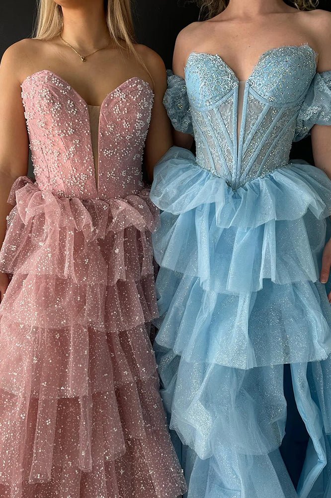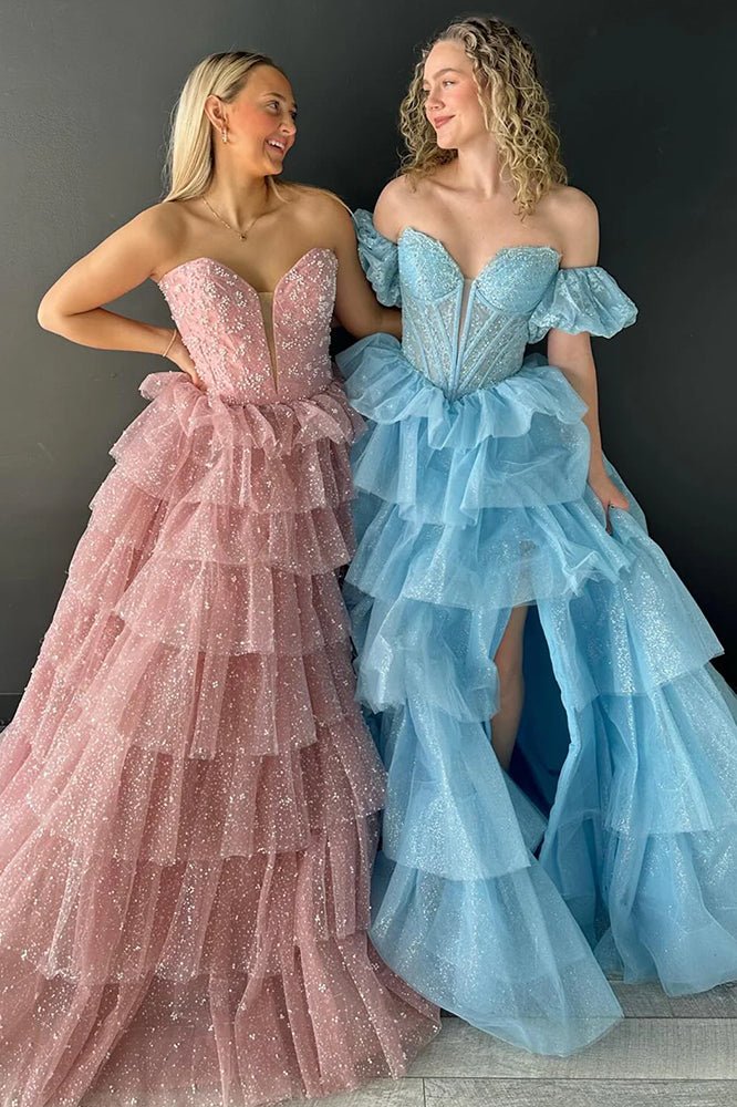 • Sexy Sweetheart Black A-Line Lace Layered Dress with Slit
