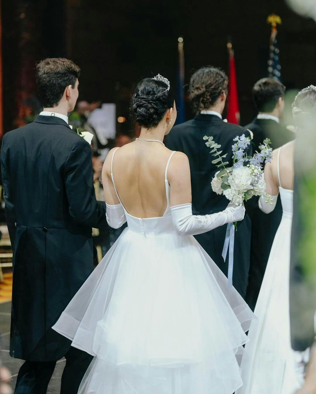 Elevate your bridal look with Fani | Classic Ball Gown Wedding Dress. This enchanting gown is made from delicate tulle fabric and features cascading ruffles that create a breathtaking silhouette. The spaghetti straps and sleeveless design offer a modern touch to the classic ball gown style, while the covered button-back adds a hint of vintage charm to this dress.