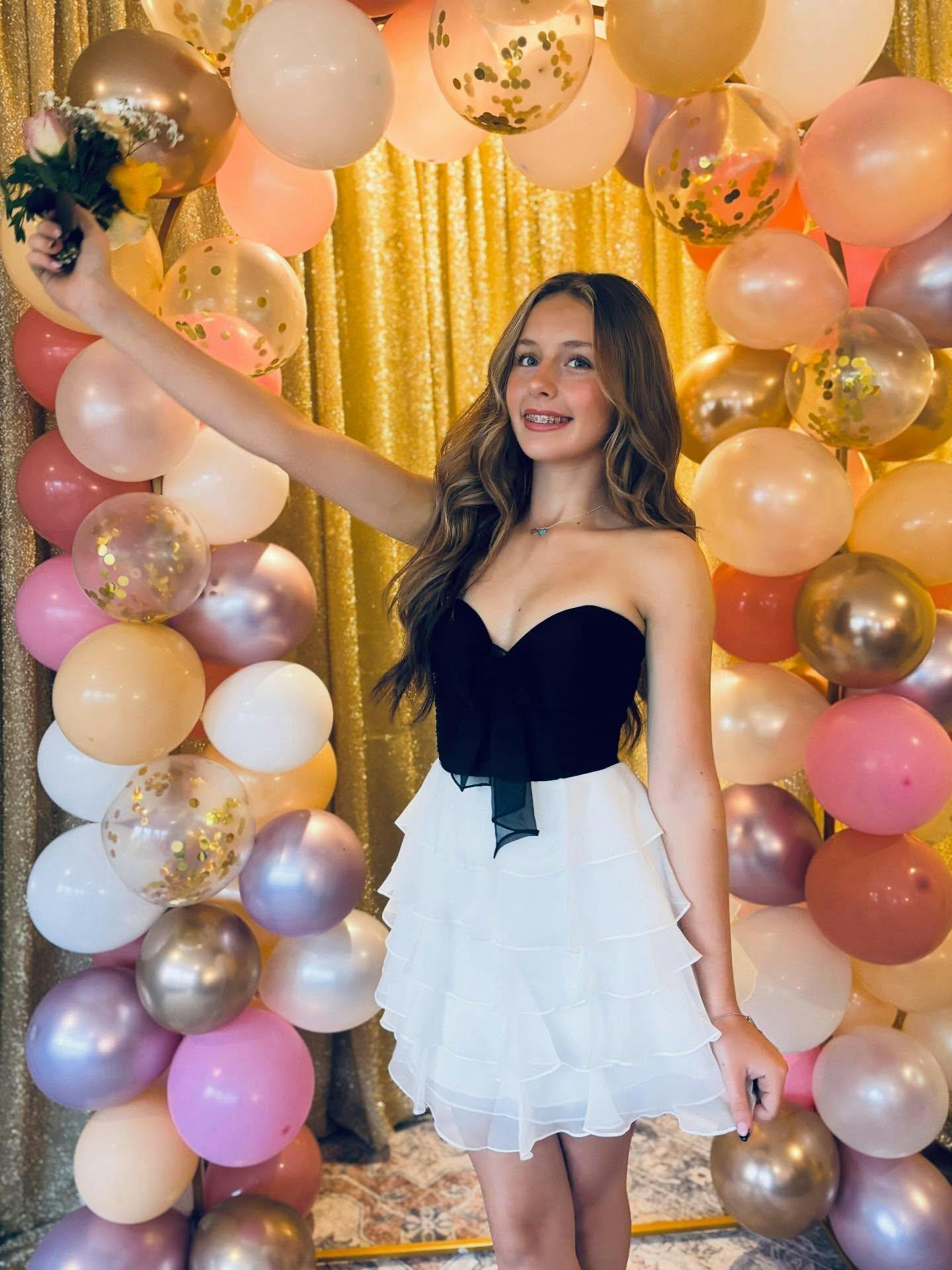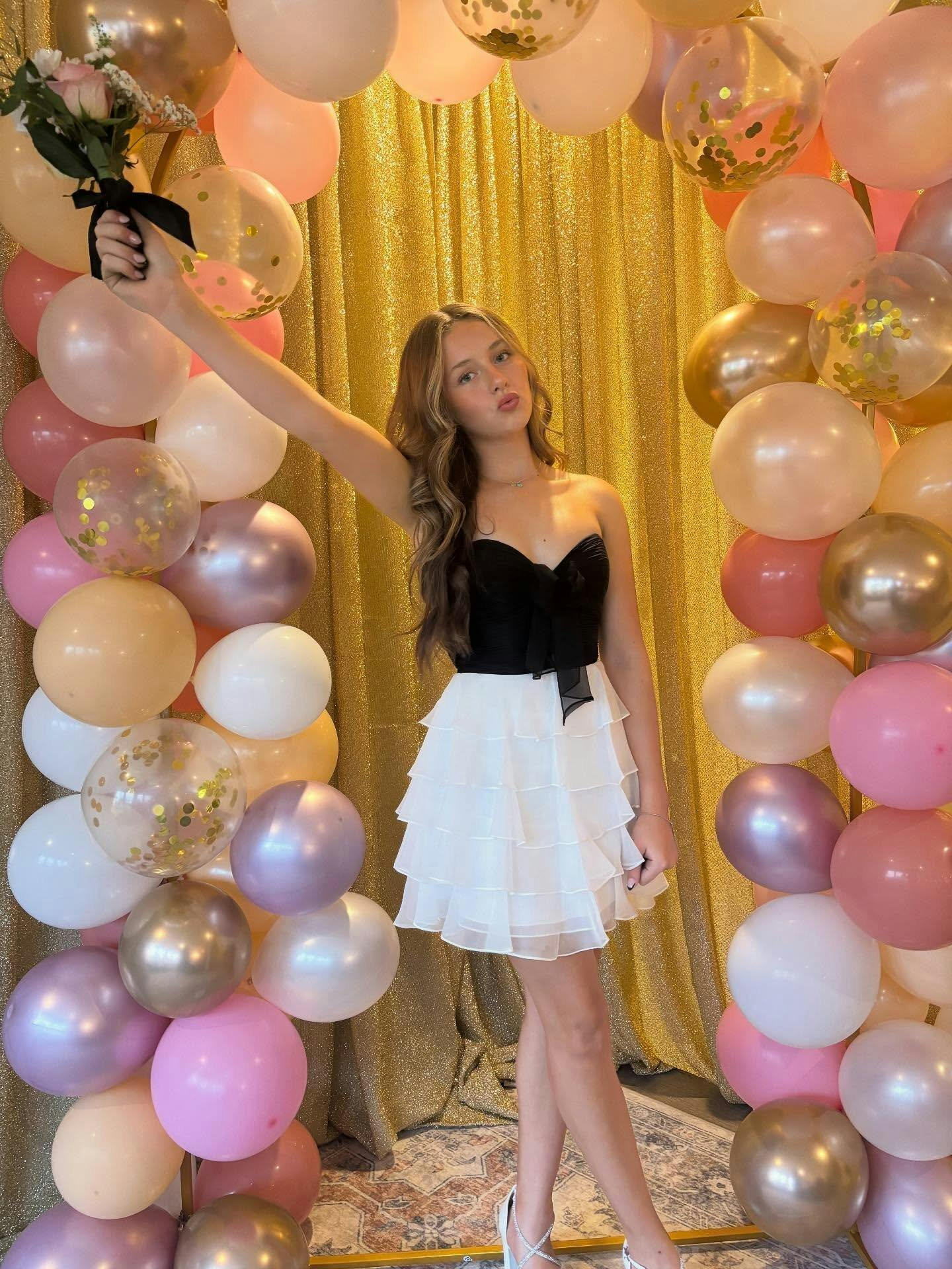 Orlaith | White-Black - A Line Tulle Ruffles Sweetheart Short Homecoming Dresses with Bow