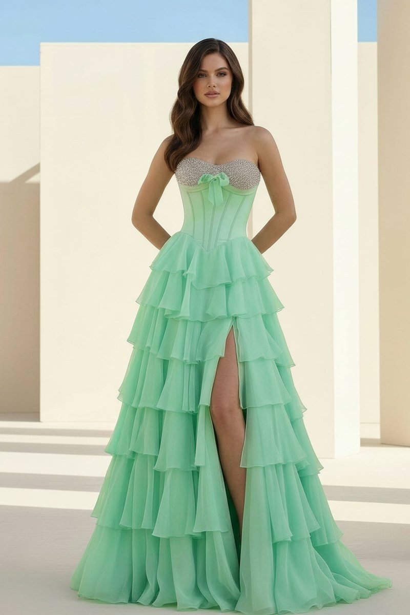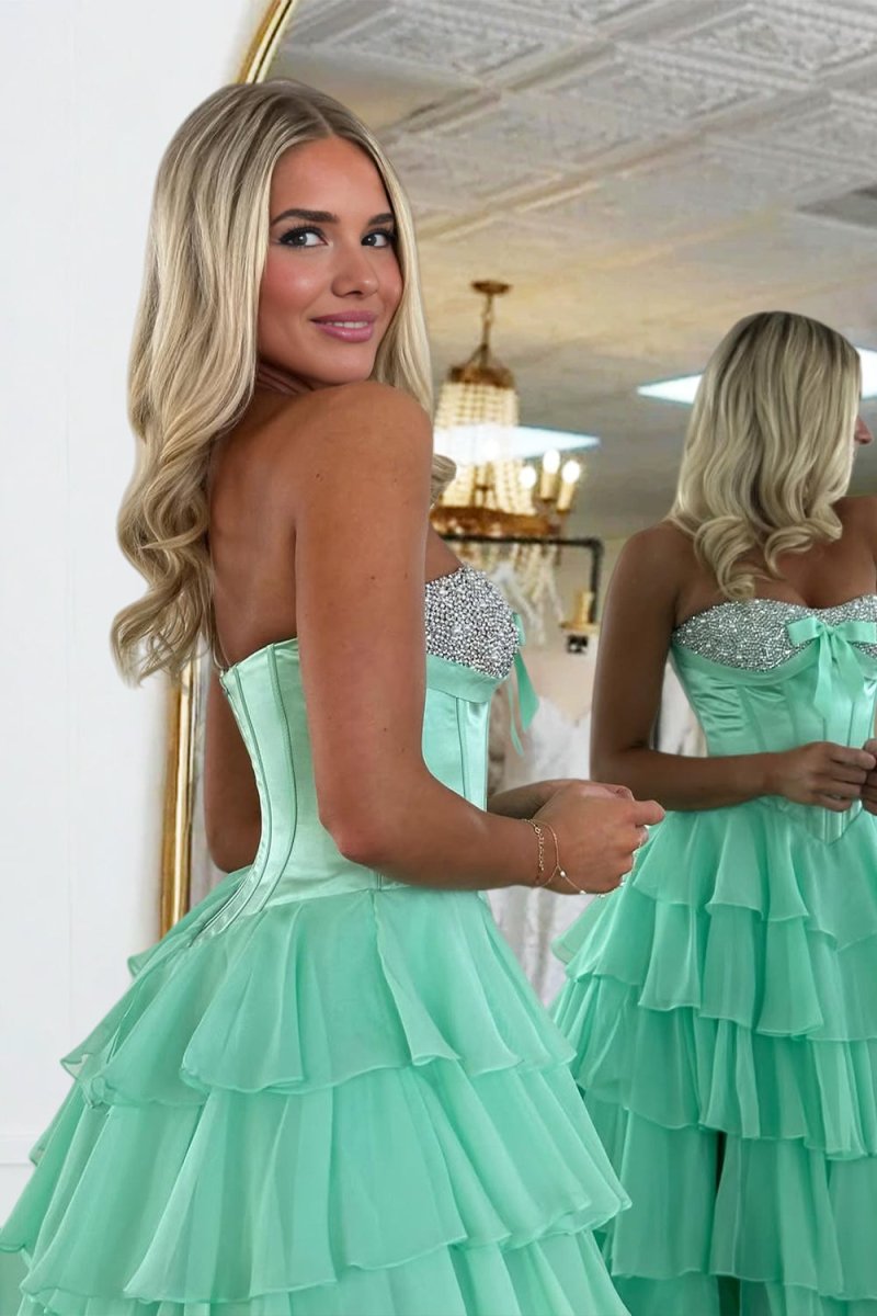 Ellira is a romantic and refined choice from our evening dresses collection. Her flowing A-line silhouette in soft chiffon drapes gracefully, accented with delicate ruffles and sparkling beading that catch the light with every movement. A charming bowknot adds a playful, feminine touch, while the sweetheart neckline provide a flattering, adjustable fit. Perfect for prom nights or formal occasions, Ellira stands out among formal dresses with her timeless elegance and graceful charm.