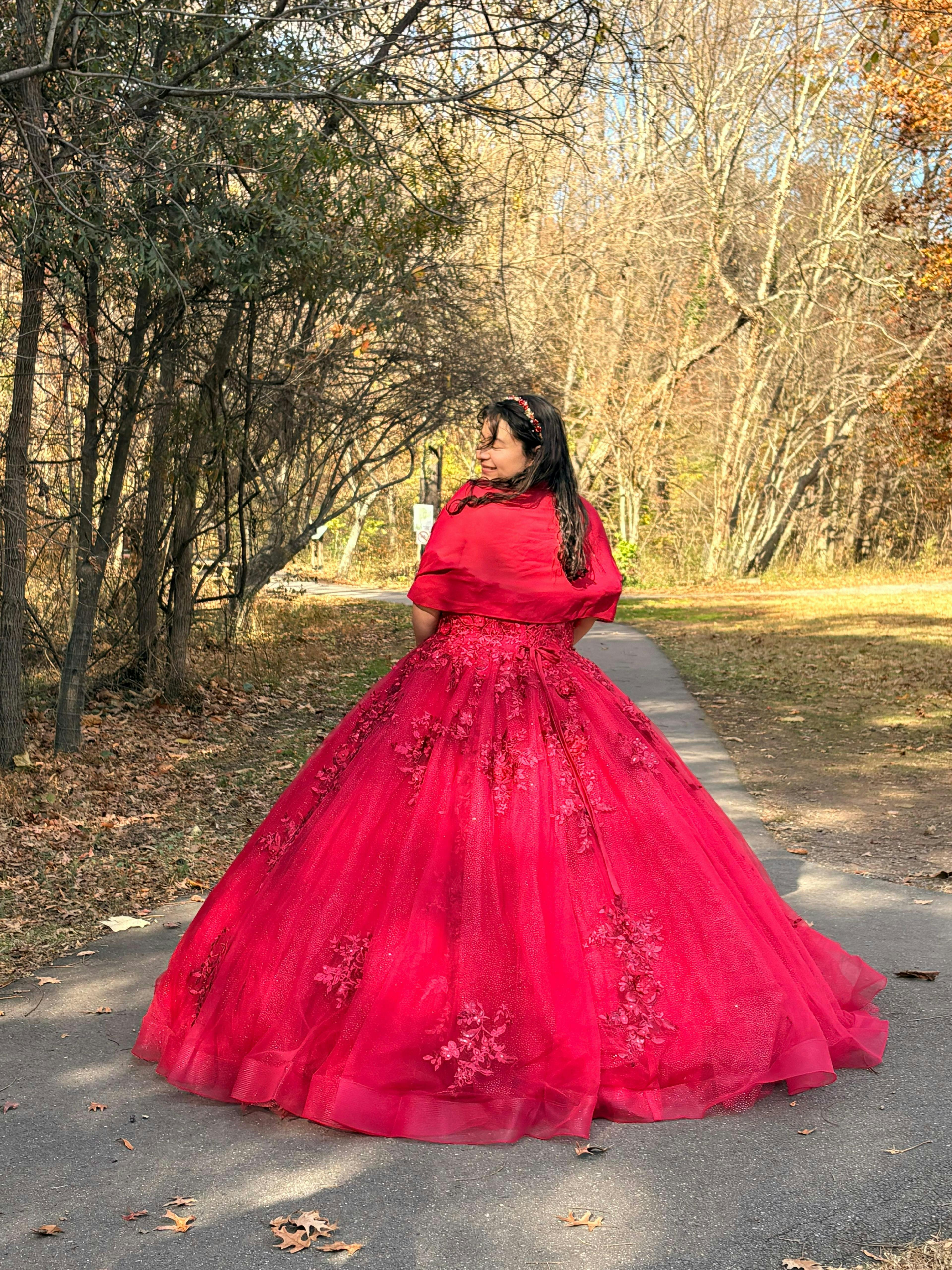 Ilaria, an majestic quinceanera dress, crafted from exquisite royal blue tulle fabric. Featuring an off-the-shoulder neckline and delicate appliqued embellishments, it exudes regal elegance. Complete with a sweeping train and lace-up back for a perfect fit, Ilaria promises to make your quinceanera unforgettable with its timeless beauty and grace.