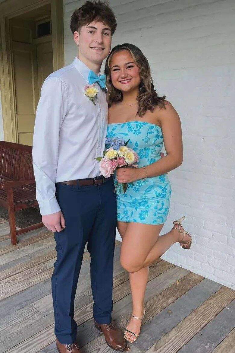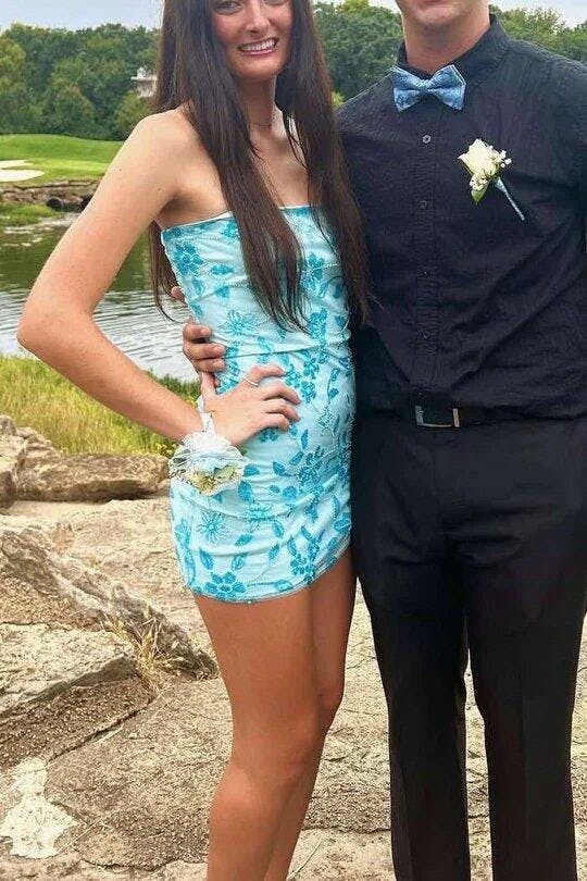 Quelina | Lavender - Strapless Bodycon Beaded Floral Short Homecoming Dress