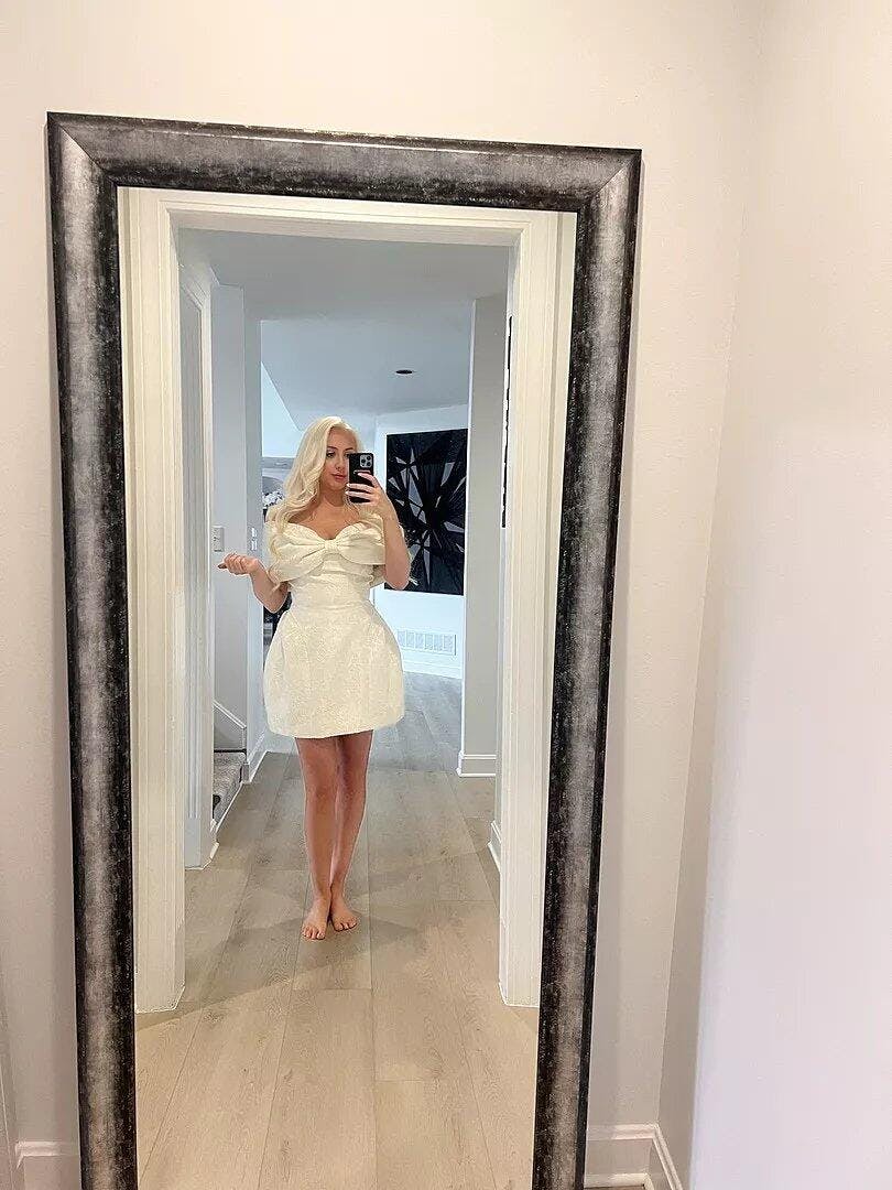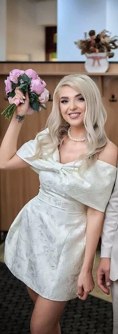 Designed with a flattering A-line silhouette and crafted from smooth satin, this homecoming dress features a romantic off-the-shoulder neckline that beautifully frames the shoulders and collarbone. Available in classic white and soft pink, its short length adds a flirty, youthful touch, while pleated detailing and delicate appliqués bring texture and elegance. The lace-up back offers both charm and adjustability for a perfect fit. More than just a homecoming dress, Hunter transitions seamlessly into a cocktail dress or party dress, ideal for birthdays, graduation celebrations, or any event that calls for a chic and polished look.