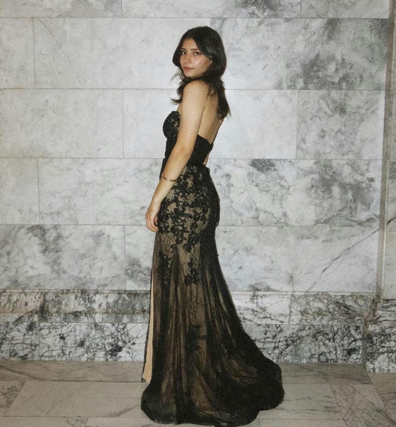 Introducing Lyric, where sensuous allure meets timeless elegance. This black mermaid dress is crafted from the finest lace and beaded tulle fabric, seamlessly blending sophistication with a touch of sparkle. As you glide across the room, the floor-length sweep train follows, echoing every step with grace. The strapless neckline showcases the décolletage beautifully, while the lace-up back ensures a perfect fit, contouring every curve. Lyric's pièce de résistance. The daring slit is adorned with intricate lace appliques, guaranteeing you'll be the center of attention at any gala.