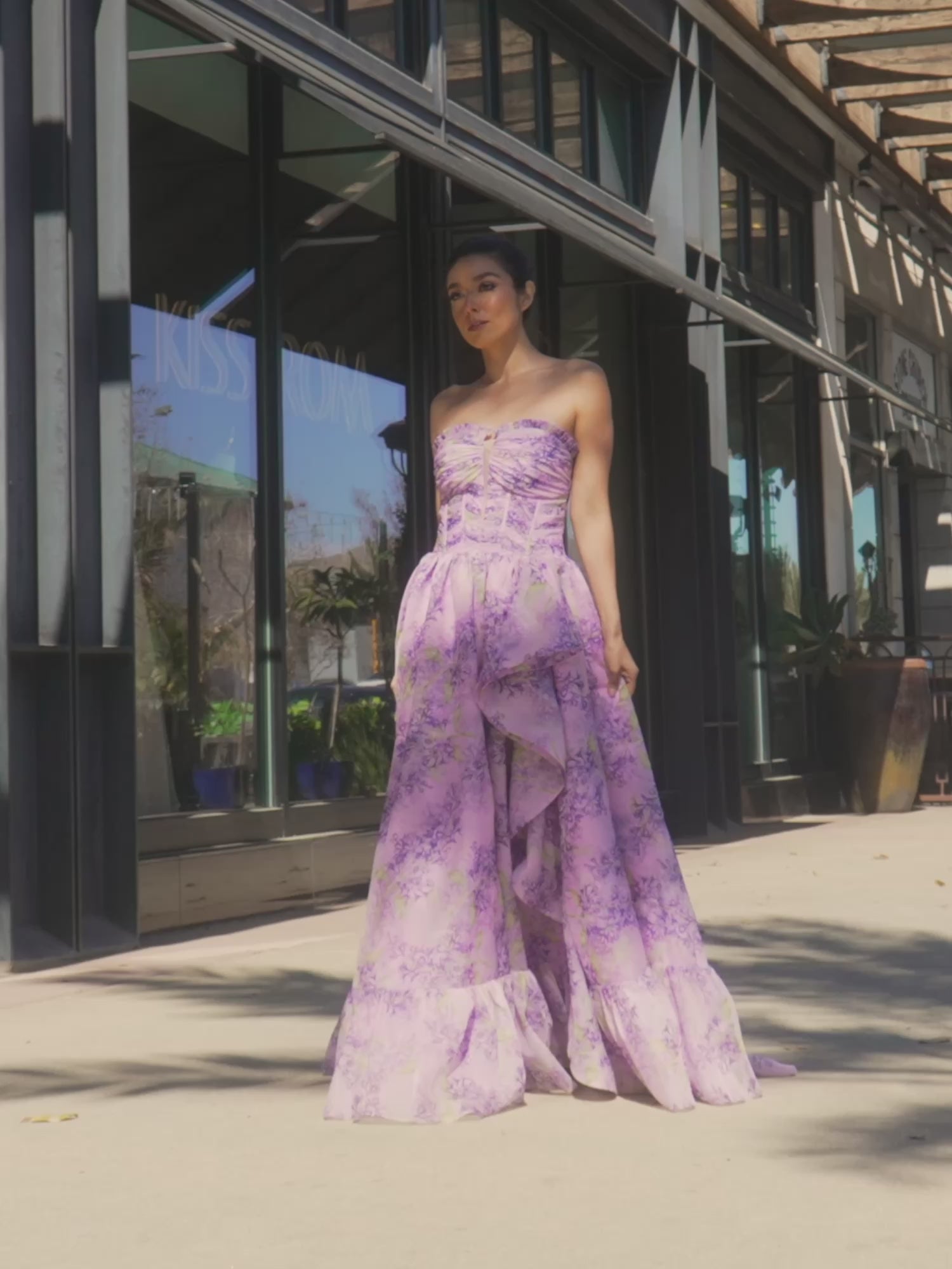 Lilac A-Line Corset Detachable Sweetheart Floral Long Prom Dress