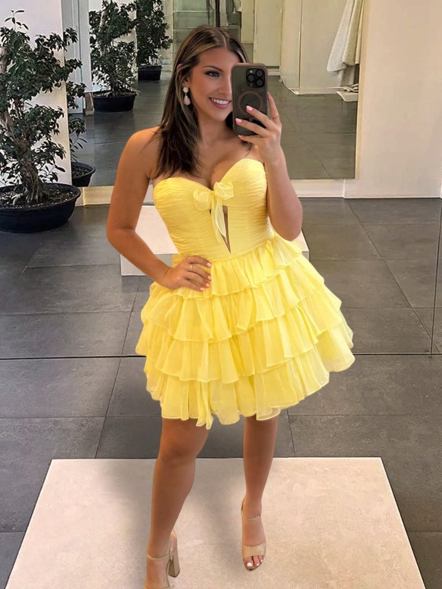 Ilsa | Yellow - Strapless A Line Chiffon Ruffled Cocktail Dresses With Bow