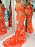 Radiate confidence and style in the Orange Sweetheart Mermaid Lace Long Prom Dress With Split. It is crafted from exquisite lace fabric and the vibrant orange color adds a playful yet elegant touch, ensuring you stand out in any crowd. The mermaid silhouette beautifully shapes your figure, accentuating your curves while offering a dramatic flair at the hem. A stylish choice suitable for both evening dresses and formal dresses, with its sweetheart neckline gracefully frames your decolletage, while a daring split adds a touch of allure, making this gown perfect for showcasing your favorite heels. The Intricate appliques and delicate feathers adorn the dress, adding texture and dimension that elevate your look to the next level. The lace-up back ensures a secure fit, allowing you to feel confident and poised as you enjoy your special night.