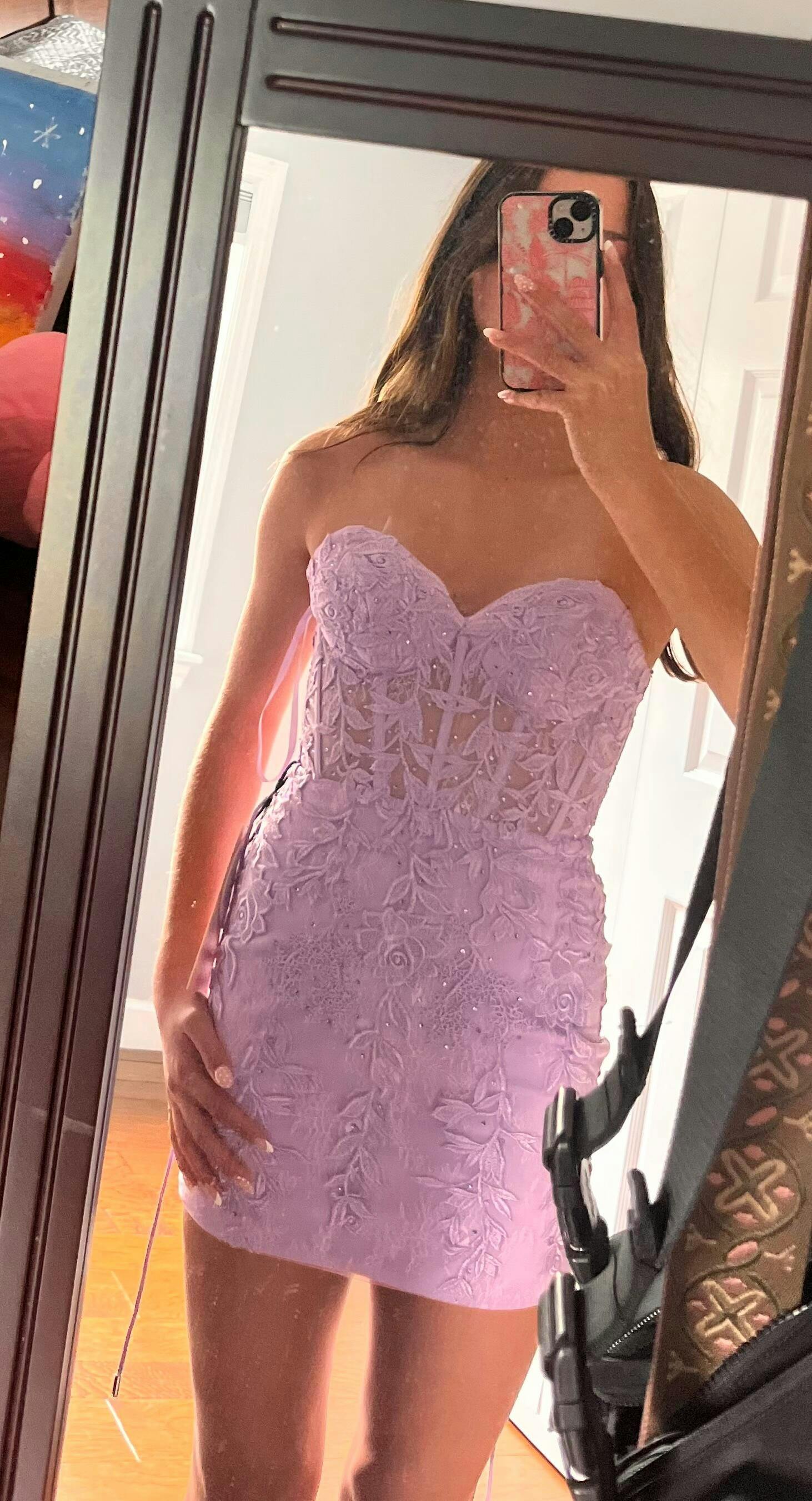 This Short-Mini Tight Homecoming Dress from KissProm is not only a stunning statement piece but also ensures a comfortable and flawless fit. Adorned with intricate lace appliques, this dress is designed to make you the center of attention at any homecoming event or cocktail parties. The corset lace-up back adds a touch of vintage charm while offering an adjustable fit for ultimate comfort and confidence. It is available in so many different colors, you are sure to find the one you love and dance the night away in style and comfort, knowing you look absolutely breathtaking.