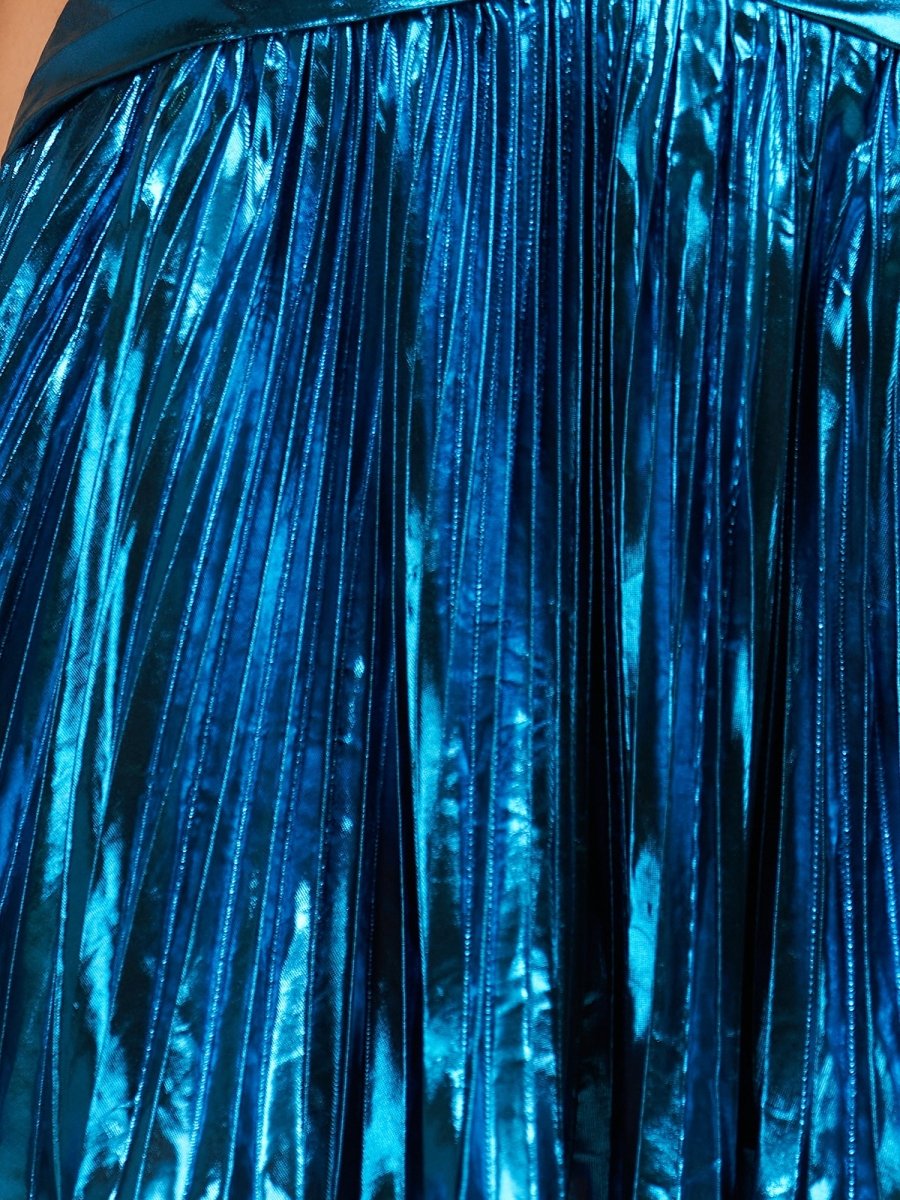 With its flirty sweetheart neckline, chic cutout, and structured pleats, this homecoming dress offers the perfect mix of playful charm and elegant glam.The metallic fabric in stunning shades like Turquoise and Peacock catches the light beautifully, while the lace-up back adds a flattering and adjustable finish. Whether you're headed to homecoming, a cocktail party, or a celebratory night out, Mikayla ensures all eyes are on you.