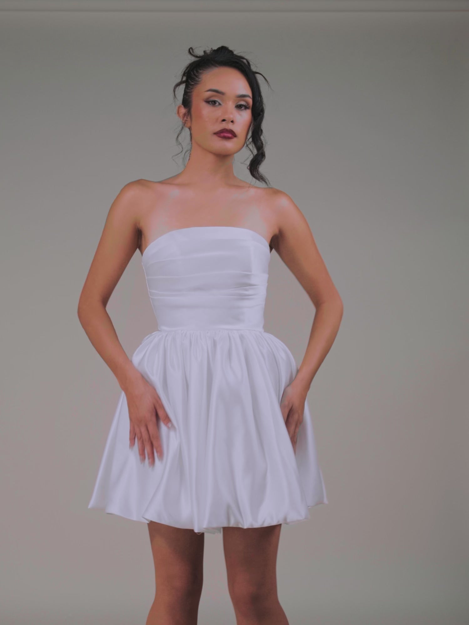 Make a bold yet elegant statement at your next cocktail party with this vibrant A-line dress, available in ivory. Crafted from smooth satin fabric, this short-length design features a classic square neckline and charming short puffed sleeves for a vintage-inspired flair. The lace-up back provides a perfect fit while adding a touch of allure. Playful and polished, it's an ideal choice for stylish celebrations.