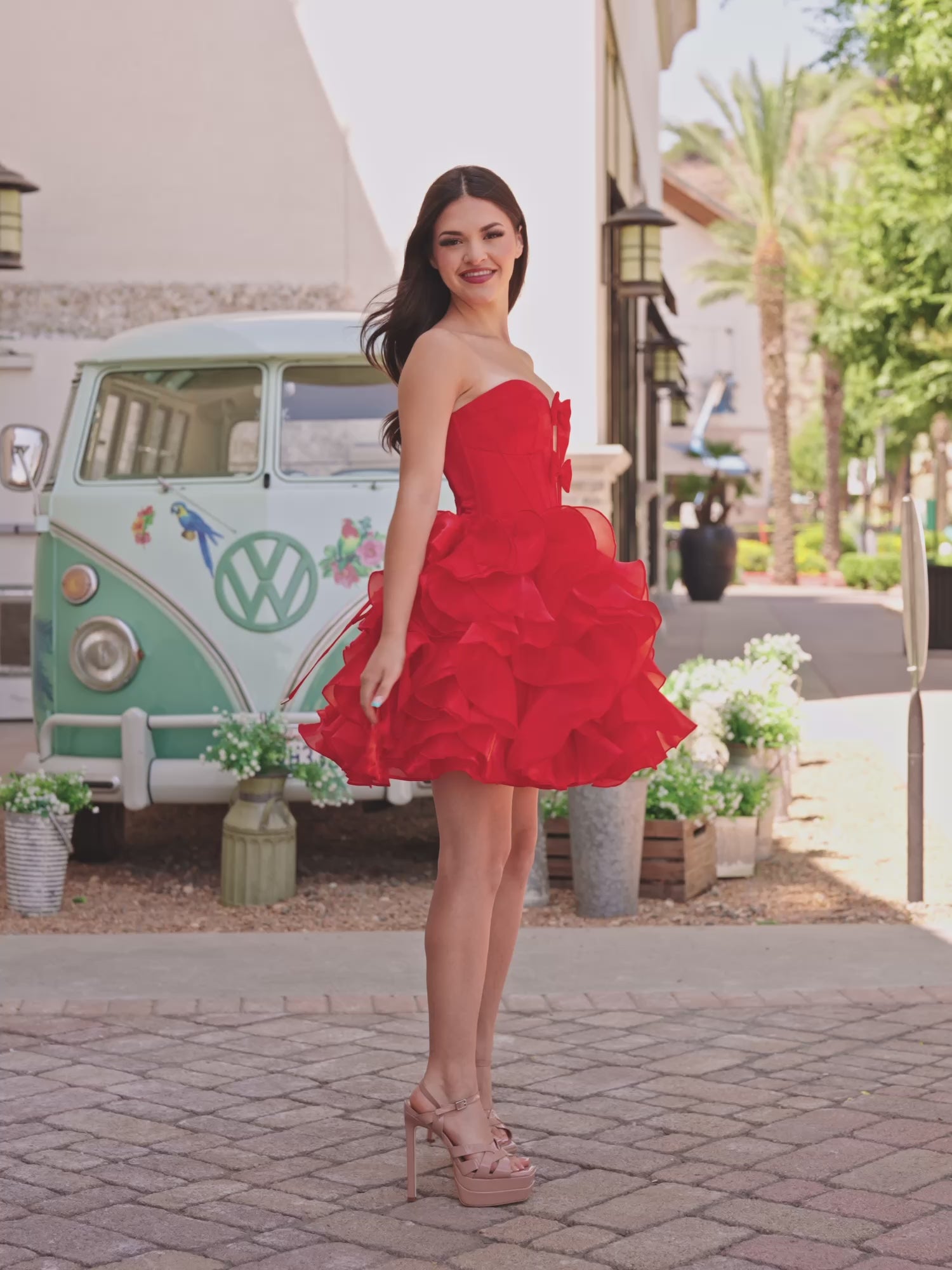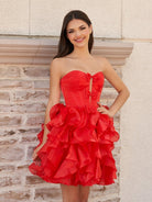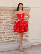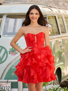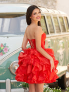 Zafrina | Red - A Line Strapless Corset Ruffles Short Homecoming Dresses with Bows