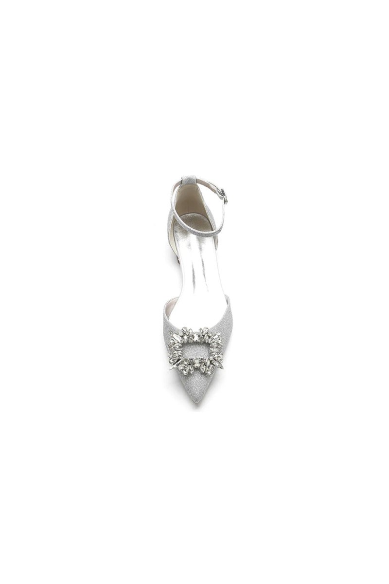 Shine with elegance and comfort in the Glitter Crystal Low Heels, the perfect footwear for your next prom or party. These stunning low heels feature glittering crystal embellishments that add a dazzling touch to any outfit. The pointed toe design offers a chic look, while the low heel ensures all-day comfort, making them ideal for dancing the night away. Crafted with a shimmering elastic glit upper and a durable imitation pigskin sole, these heels combine style with practicality for your special occasion.