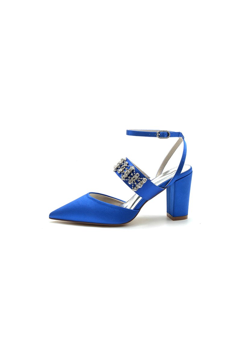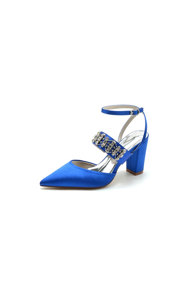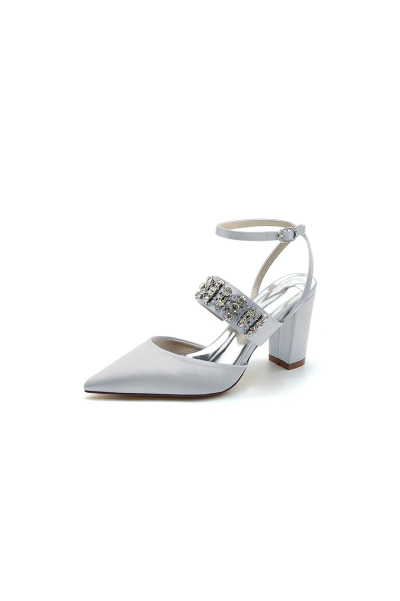 Add a touch of glamour to your prom, wedding, or evening look with these chic Black Satin Pumps. Featuring sparkling rhinestone accents and a sleek silver accent, these chunky heels are perfect for party shoes or bridesmaid shoes. The pointed toe and slip-on design ensure a polished, comfortable fit for any occasion, making them a must-have for your special events.