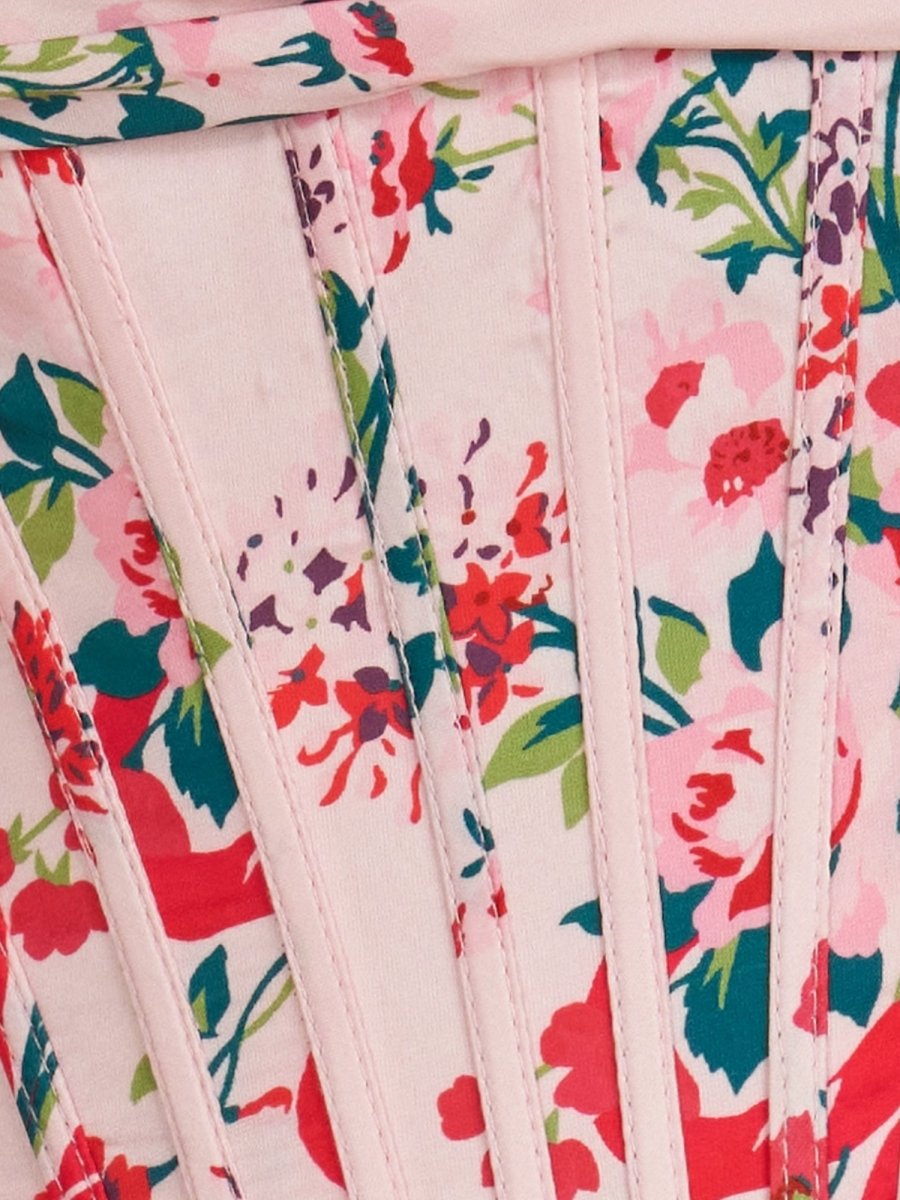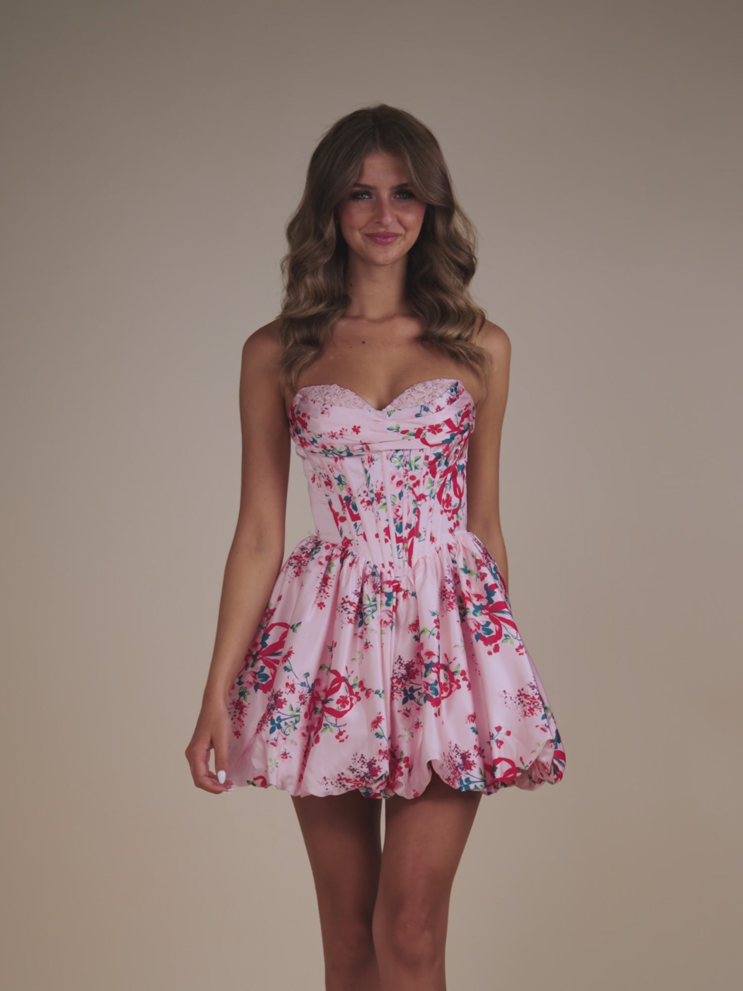 Elvy | Pink - A Line Sweetheart Floral Satin Bubble Hem Homecoming Dresses with Sequins