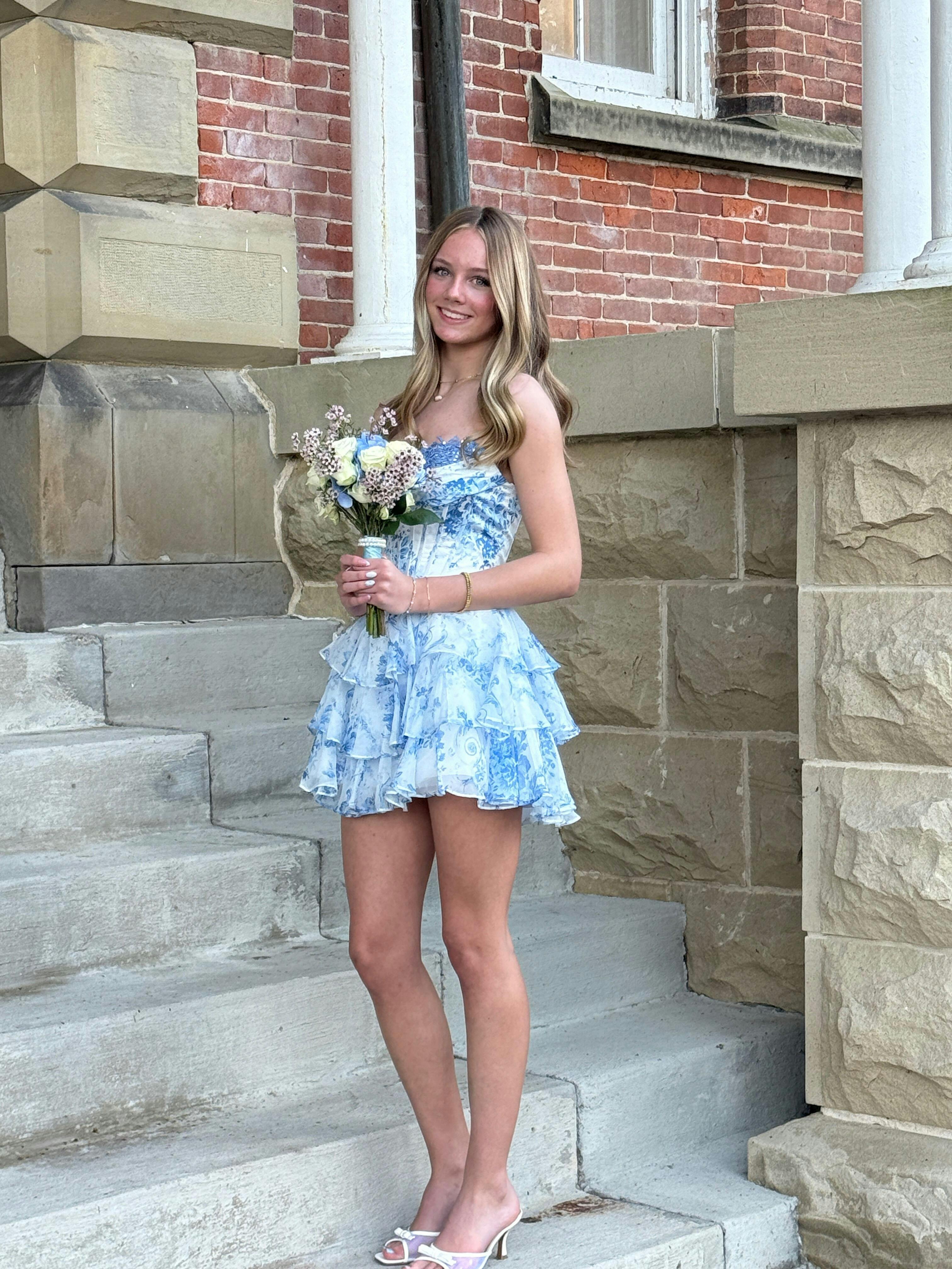 Bring a touch of fairytale elegance to your cocktail party look with this enchanting A-line dress, available in soft pink or dreamy sky blue. Crafted from lightweight tulle fabric, it features a flattering sweetheart neckline and sleeveless design. The short-mini length adds a playful charm, while the lace-up back and corset-style bodice provide a structured, feminine fit. Finished with delicate floral tulle embellishments, this dress is perfect for making a graceful statement at any special occasion.