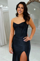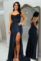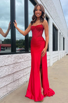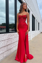 Command the spotlight in this green mermaid dress crafted from smooth satin. The scoop neckline elegantly frames the décolletage, while the sleeveless design keeps the silhouette sleek and modern. Sparkling beading along the bodice adds subtle glamour, and a daring slit enhances movement with every step. The lace-up back ensures a flawless, adjustable fit. Perfect for prom nights, gala events, or red-carpet occasions, this dress combines timeless sophistication with contemporary flair, making it a standout among formal dresses and evening dresses.