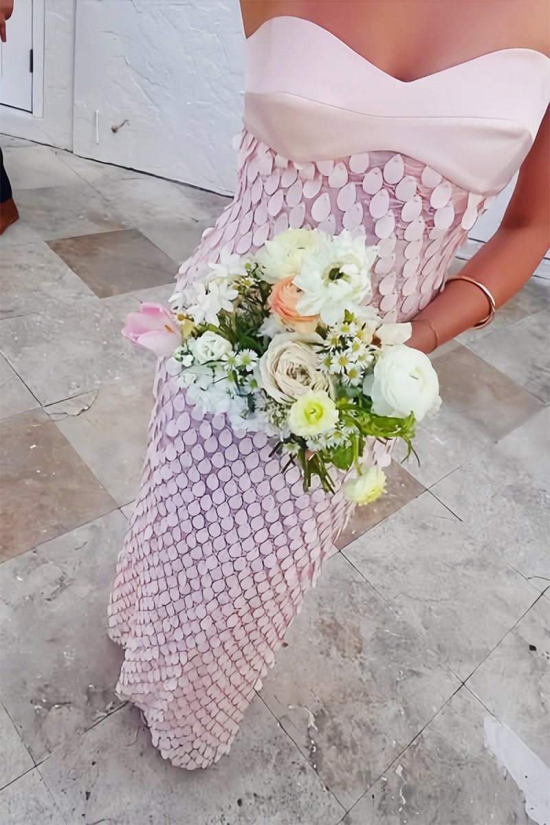 Islen | Pink - Sheath Strapless Long Prom Dresses with Sequins