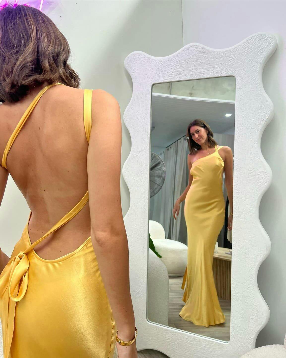 Celvany is a striking and elegant choice from our evening dresses collection. Her sleek sheath silhouette in smooth satin drapes gracefully, while the one-shoulder neckline adds a modern, sophisticated touch. The backless design brings subtle drama and allure, making this floor-length dress perfect for turning heads. Ideal for prom nights or formal occasions, Celvany stands out among formal dresses with her bold and refined style.
