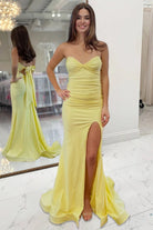 Auvessa | Yellow - Strapless Sheath Satin Long Prom Dresses With Slit