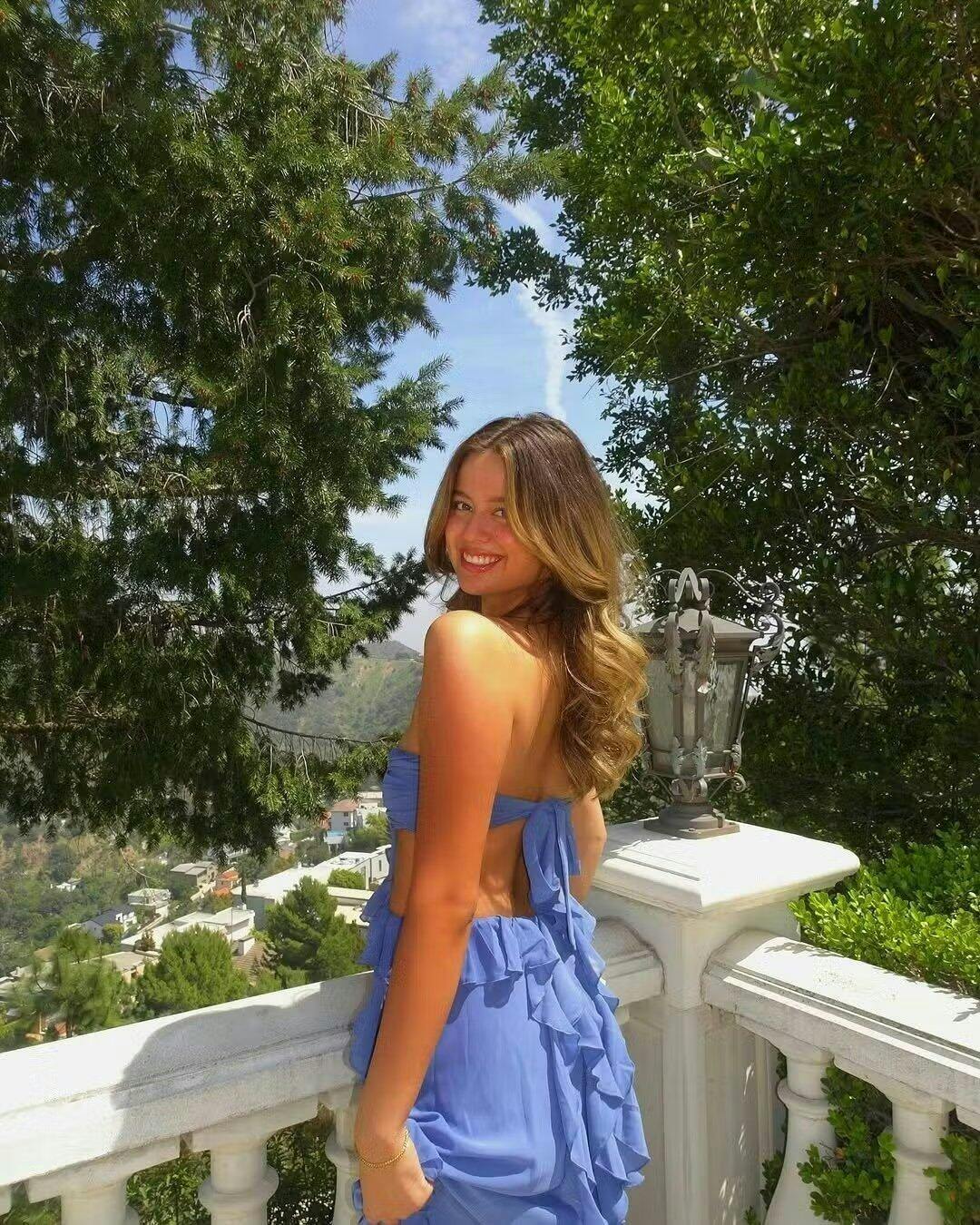 Celaia is a graceful addition to our evening dresses collection, perfect for making a subtle yet memorable statement. Her flowing A-line silhouette in smooth satin drapes beautifully, while the slender spaghetti straps and floor-length design keep the look elegant and refined. A tasteful slit adds movement and a hint of drama, complemented by a lace-up back for a secure, adjustable fit. Ideal for prom or any formal event, Celaia stands out among formal dresses for her effortless charm and timeless style.
