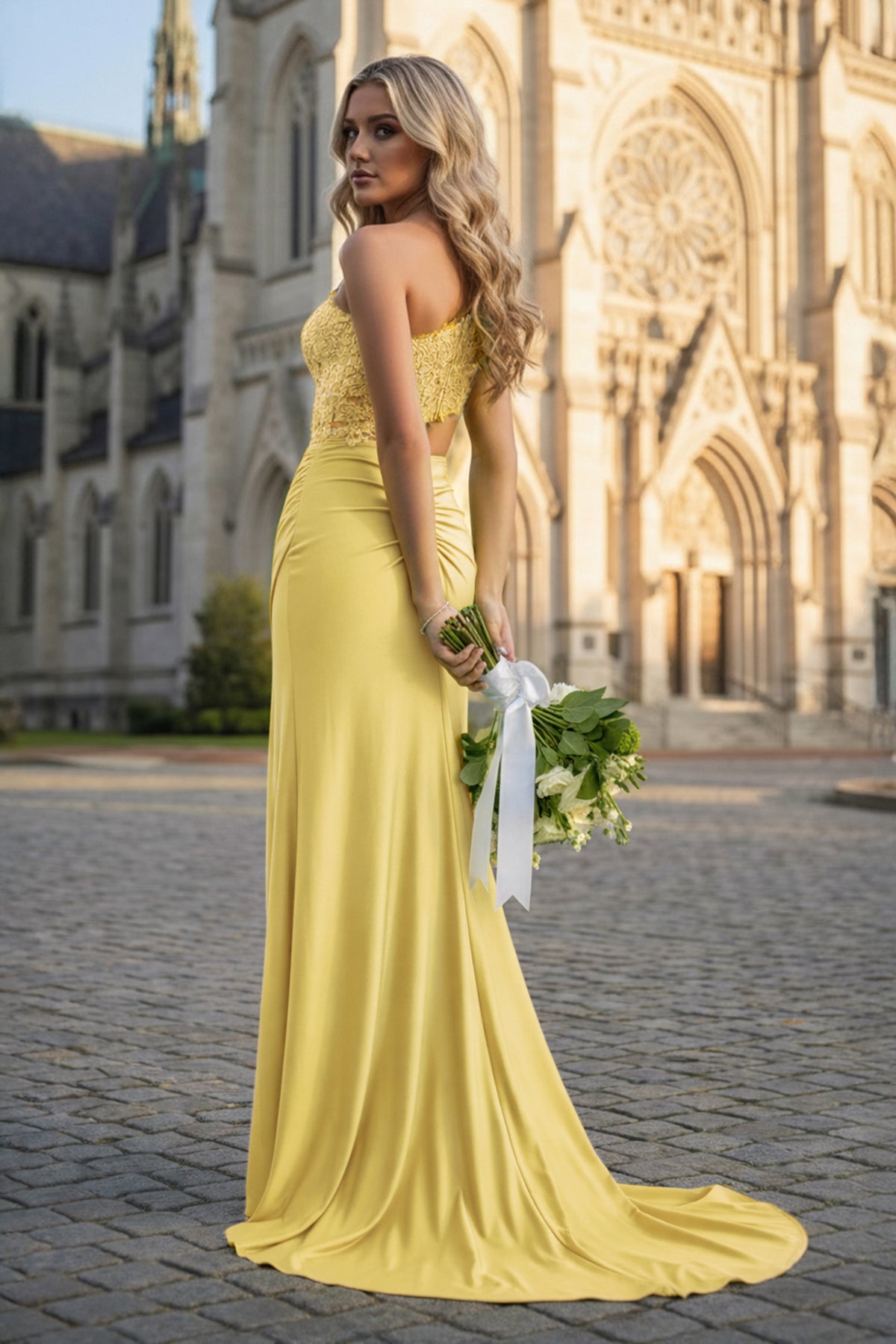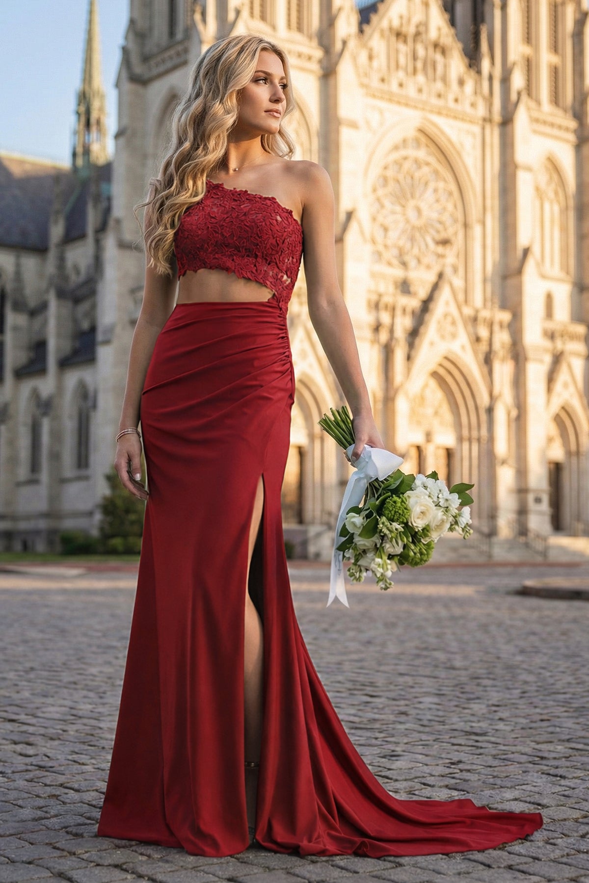 Delyra is a daring yet elegant piece from our evening dresses collection. Her sleek sheath silhouette in smooth satin sculpts the figure beautifully, enhanced by exquisite lace appliques and subtle beading that add depth and shimmer. The one-shoulder neckline and cutout detailing bring a touch of modern allure, while the open back and refined slit complete the look with sophistication. Perfect for prom nights or any grand celebration, Delyra shines among formal dresses with her confident and captivating charm.