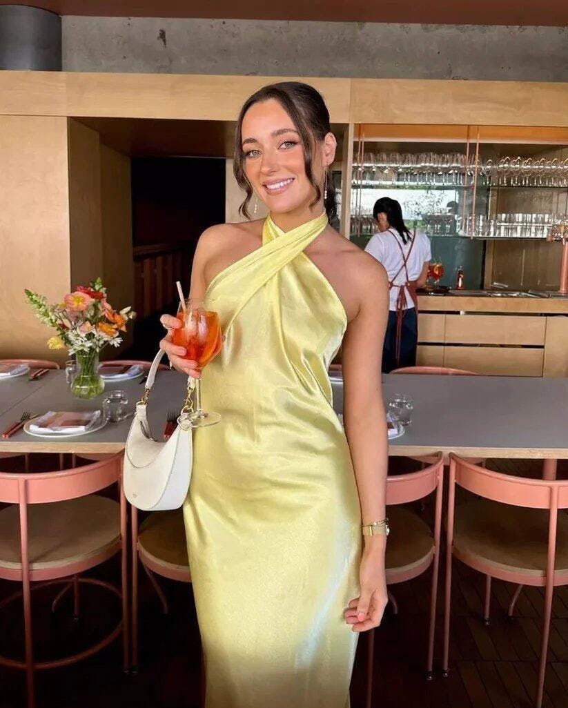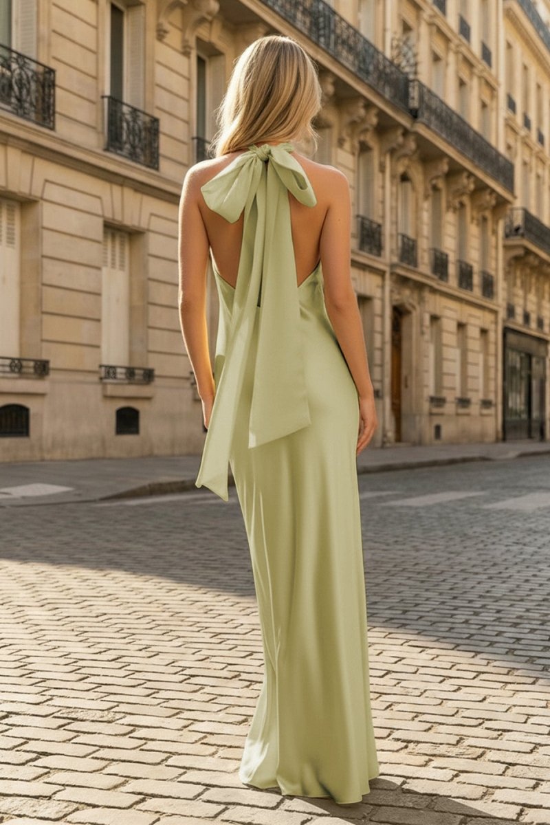 Turn heads in this yellow satin sheath dress, flowing gracefully to the floor with a sleek, modern silhouette. The halter neckline frames the shoulders beautifully, while the sleeveless design enhances its elegant, streamlined appeal. A backless design adds a touch of daring sophistication, creating a bold yet refined statement. Crafted for prom, gala evenings, or red-carpet moments, the smooth satin drapes effortlessly, and its timeless sheath cut ensures you move with confidence and poise, combining classic elegance with contemporary glamour.