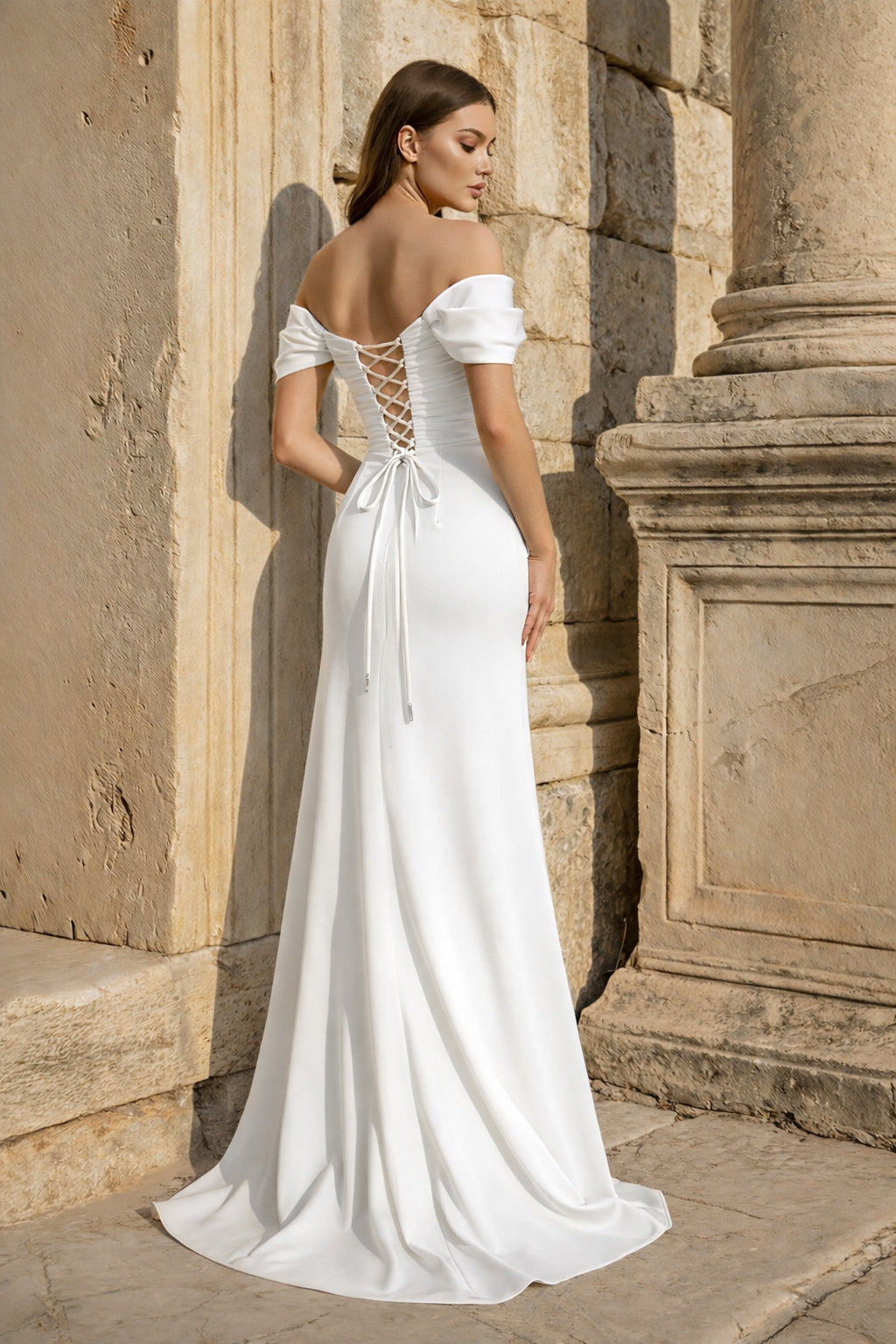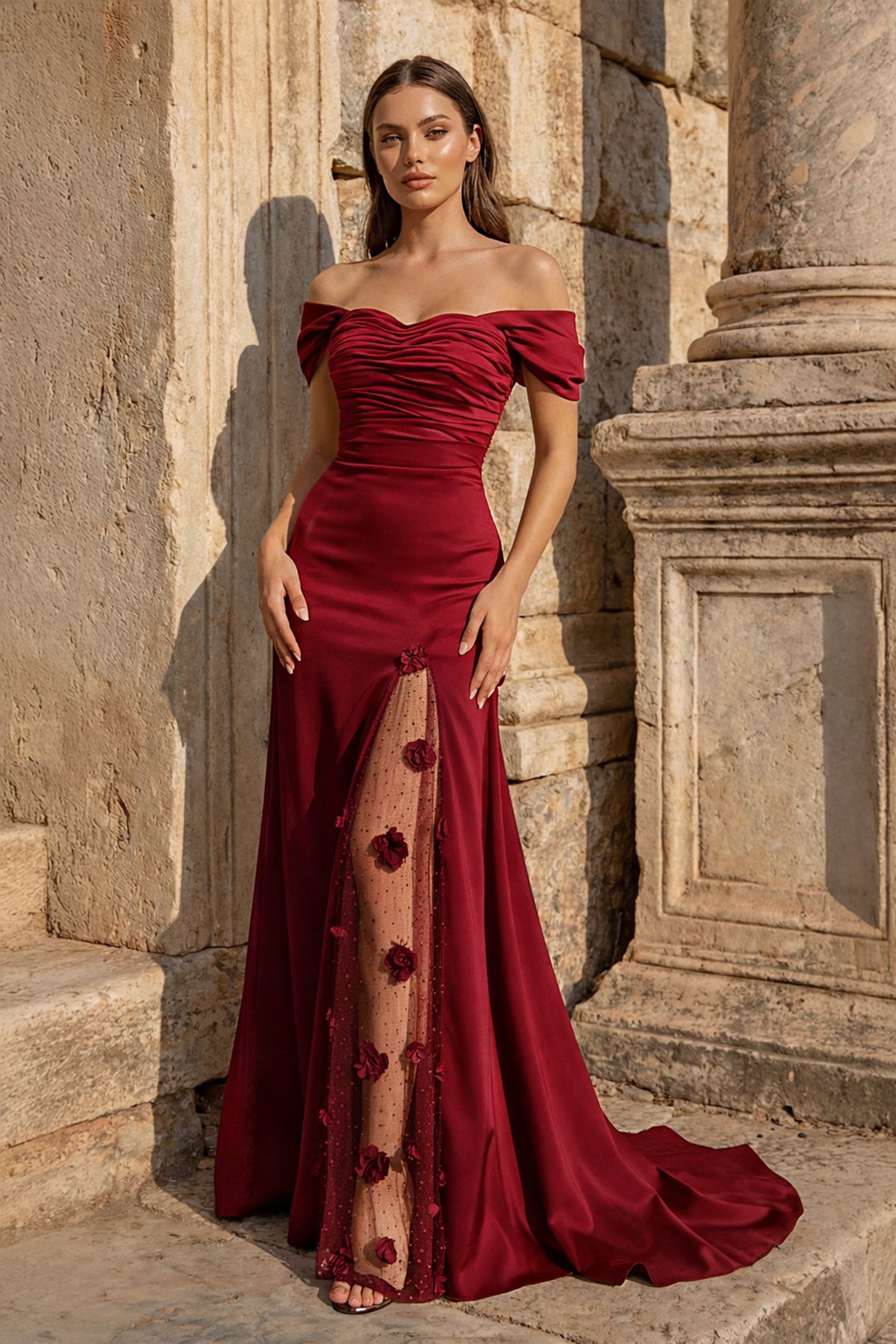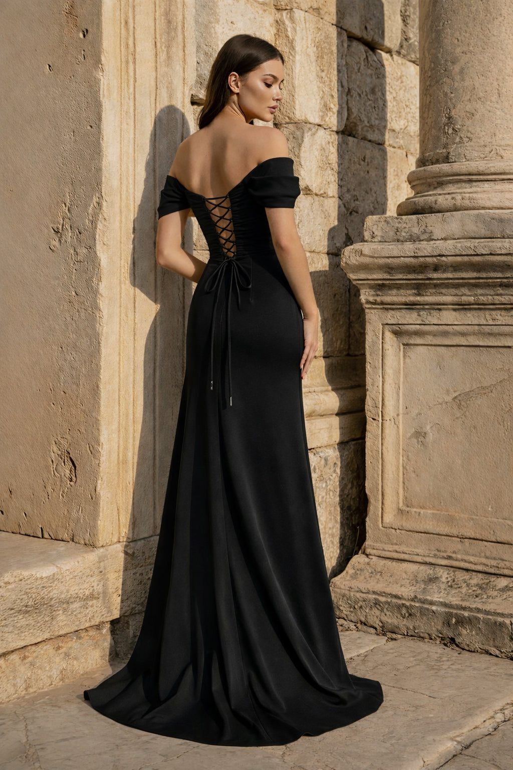Genira is a radiant choice from our evening dresses collection, perfect for making a memorable entrance. Her figure-hugging mermaid silhouette in smooth satin is adorned with delicate flowers and sparkling sequins, adding both elegance and charm. The romantic off-the-shoulder neckline and zipper back ensure a flattering, comfortable fit, while a subtle slit adds movement and grace. Ideal for prom nights or formal occasions, Genira shines among formal dresses with her cheerful and sophisticated style.