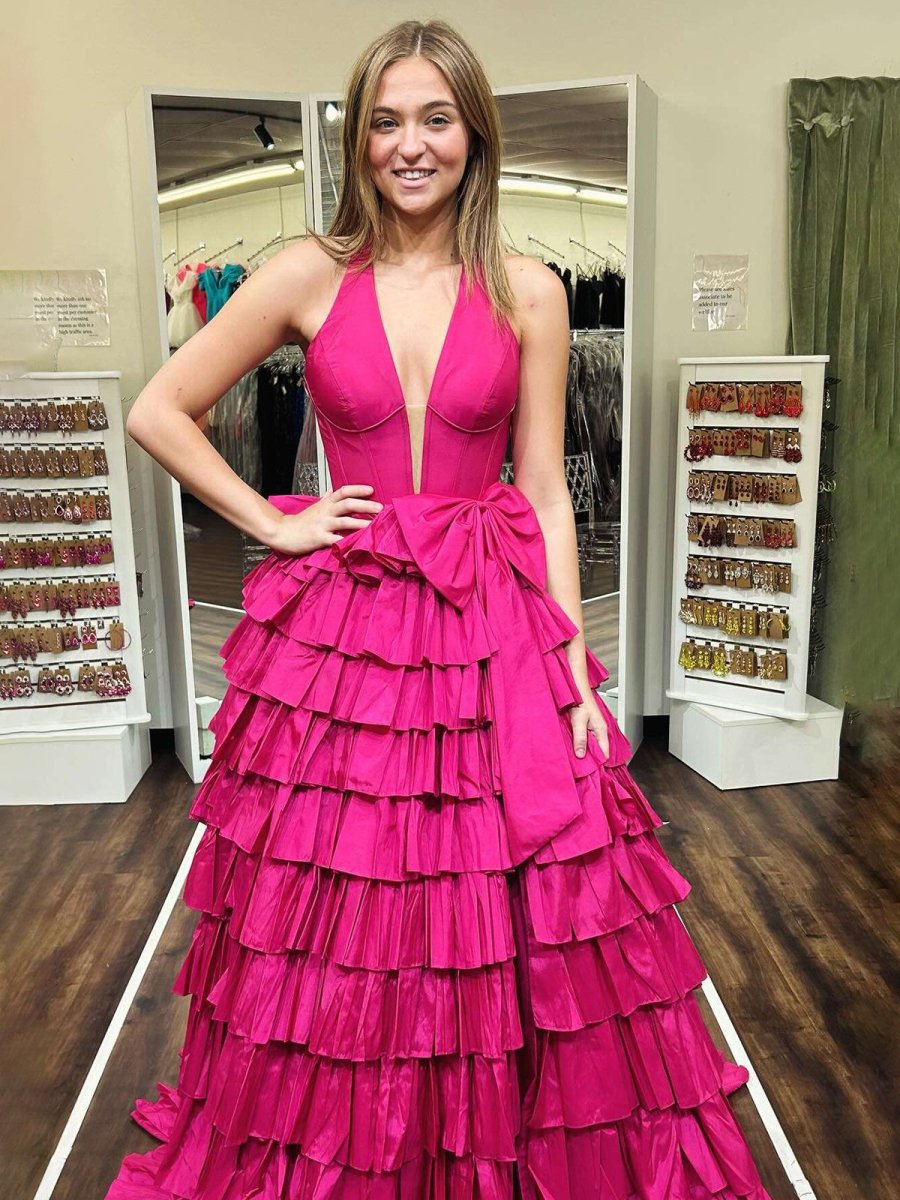 Elegance meets modern flair with this Halter A-Line Satin Long Prom Dress with Slit. This dress is made from luxurious satin and flows gracefully in a classic A-line silhouette that flatters any figure. It is available in vibrant blue and fuchsia. The halter neckline beautifully highlights your shoulders, while the daring thigh-high slit adds a touch of allure. The delicate ruffles enhance the dress for an extra dose of charm. Ideal for prom or formal evenings, it’s designed for those who want to stand out with timeless style.