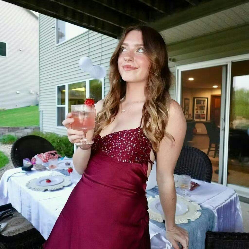 Sparkling and glamorous, this mermaid satin dress is designed to dazzle. The figure-hugging silhouette flows gracefully to the floor, while shimmering sequins catch the light with every movement. Spaghetti straps and a lace-up back ensure a flattering, adjustable fit, making it as comfortable as it is stunning. Perfect for evening events or formal occasions, this dress combines elegance with a touch of sparkle to stand out effortlessly.