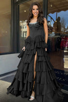 Soft, romantic, and full of movement, Roise is an A-line prom dress that blends effortless grace with eye-catching detail. Crafted from lightweight chiffon, she flows beautifully from the scoop neckline down to the sweeping train, creating a flattering silhouette that feels airy and refined. Delicate beading adds a subtle shimmer across the bodice, catching the light without overpowering the look. Layered ruffles bring texture to the skirt, while a slit allows for easy movement and a touch of modern allure. Finished with a lace-up back for a customizable fit—ideal for prom nights, formal celebrations, or any moment that calls for elegance with personality.