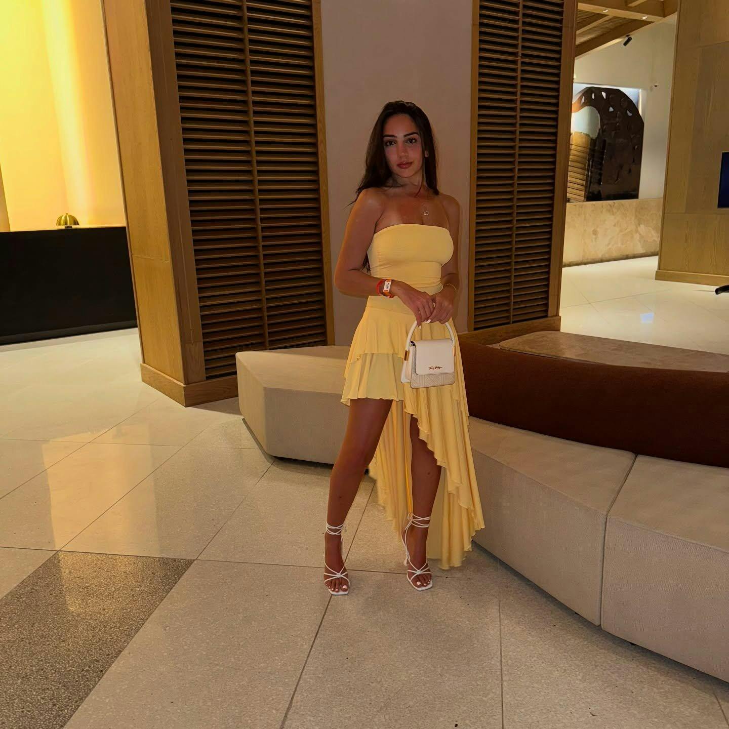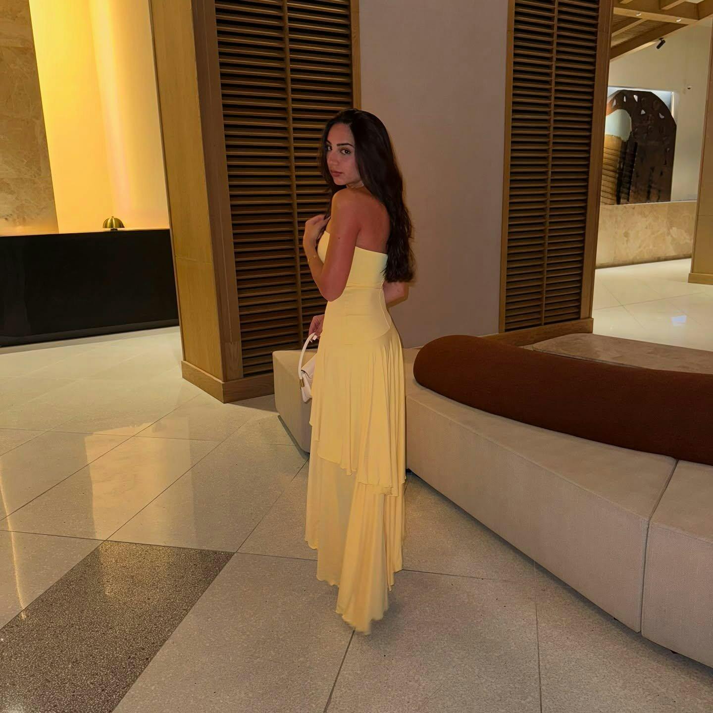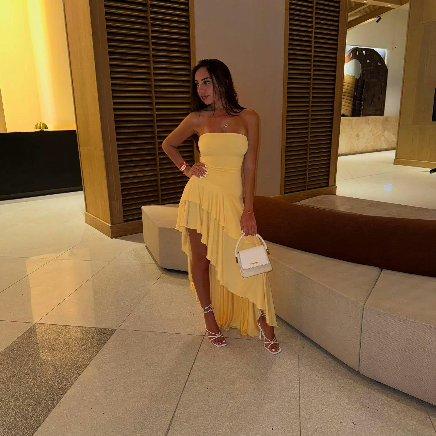 Confident, daring, and a little playful — Vaelie is made for the spotlight. Her strapless neckline and sleek sheath silhouette create a sculpted look that flatters every curve, while the asymmetrical hem dances with movement at every step. Crafted from smooth spandex, she hugs the body with effortless stretch and shine. The cascading ruffles bring drama and flair, giving her a look that’s both modern and feminine. Whether worn for prom or an elegant night out, Vaelie turns every entrance into a statement of bold beauty among formal dresses and evening gowns.