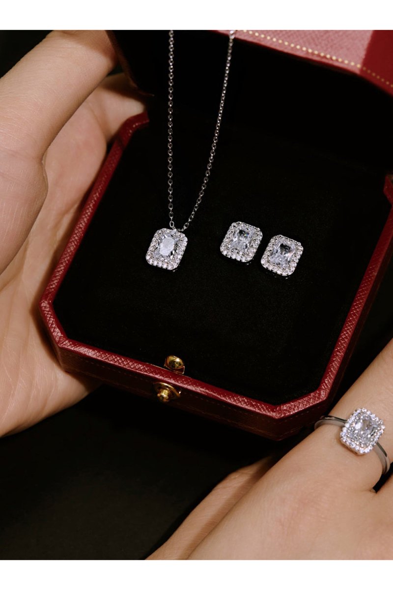 Introducing our captivating Shiny Rectangle Zircon Engagement Ring, a radiant symbol of love and devotion crafted from premium 925 sterling silver. This exquisite ring exudes elegance and sophistication, featuring a dazzling rectangle-cut zircon stone that sparkles with unparalleled brilliance.