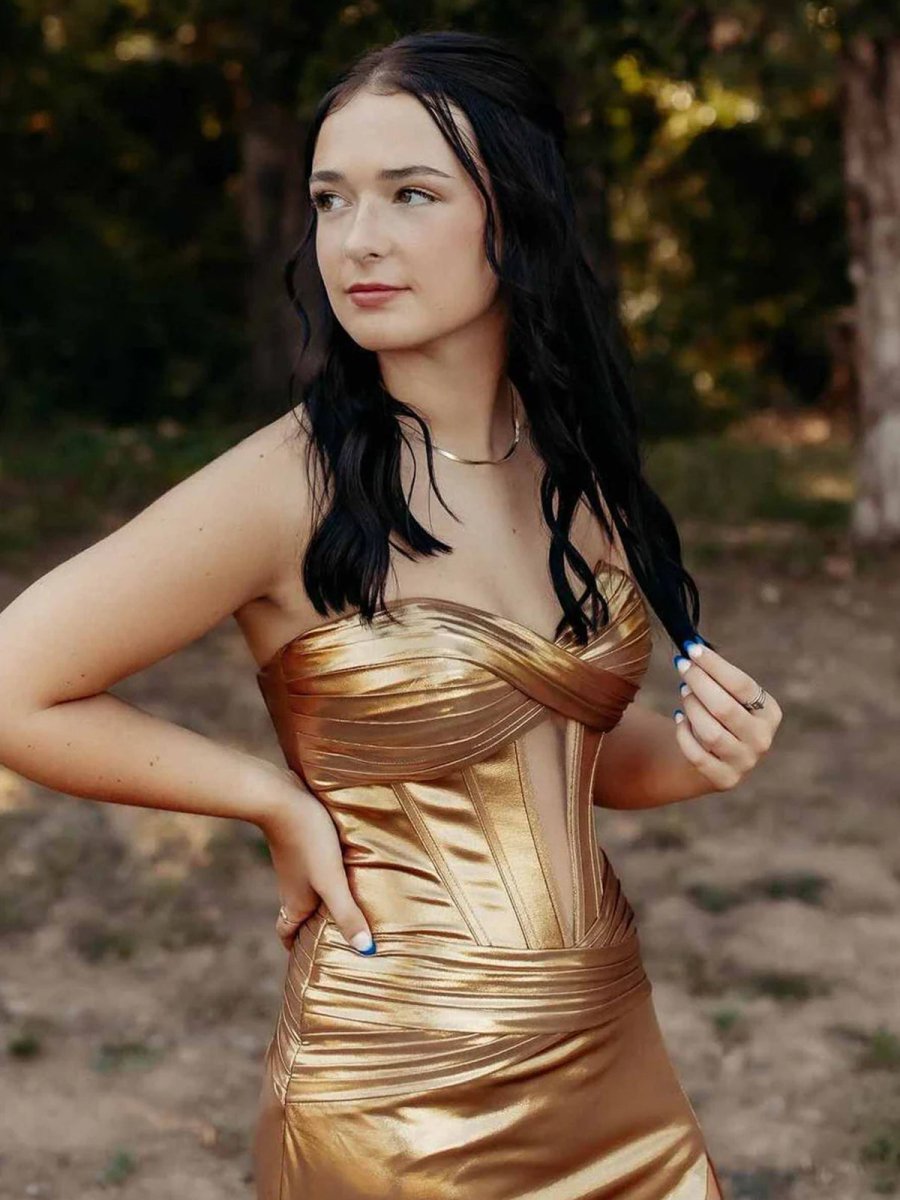 Bencelina presents a timeless yet contemporary design that exudes elegance. Crafted from sumptuous satin, this dress features a classic mermaid silhouette that beautifully embraces your curves and flows into a stunning court train. The strapless sweetheart neckline tastefully highlights your décolletage, while the sleeveless style ensures freedom of movement. Available in a variety of colors, including black, pink, and peacock, you can easily find the perfect shade to reflect your personal style. A versatile option perfect for both evening dresses and formal dresses, with its intricate pleating enhances its sophistication, and a daring slit offers a stylish glimpse of your legs. Finished with a sleek zipper closure, Brylee strikes the ideal balance between chic and comfort.