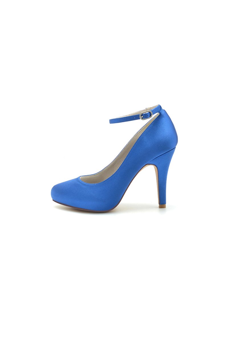 Experience sophistication and elegance with these striking royal blue high heels. Showcasing a traditional rounded design, these shoes exude charm and luxury. The sleek and lustrous surface of the shoe is expertly crafted from high-quality materials, creating an opulent and eye-catching appearance. The high, slender heels add height and a touch of glamour to your ensemble. What sets these heels apart is the transparent base of the heel, adding a contemporary twist to the timeless design. In addition to providing stability, the clear heel also adds a captivating visual element to the shoes. The ankle strap, gracefully encircling your ankle, boasts a semi-circular shape and features a metallic buckle at the top. This design element adds both security and style to the shoes, ensuring they stay comfortably on your feet while making a fashion statement. Overall, these graceful royal blue high heels with transparent heel are the perfect choice for any occasion. Whether dressing up for a formal event or adding a touch of glamour to your