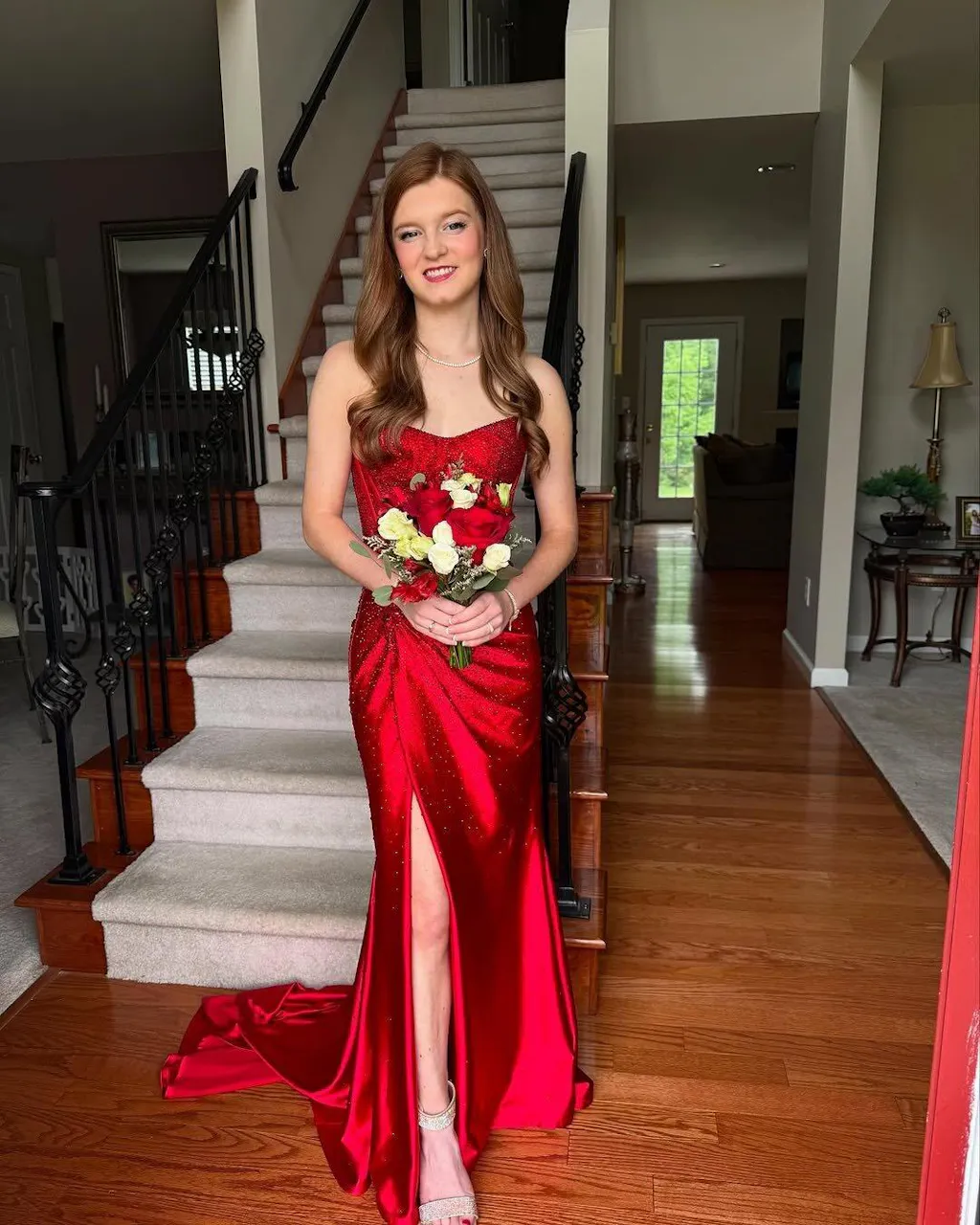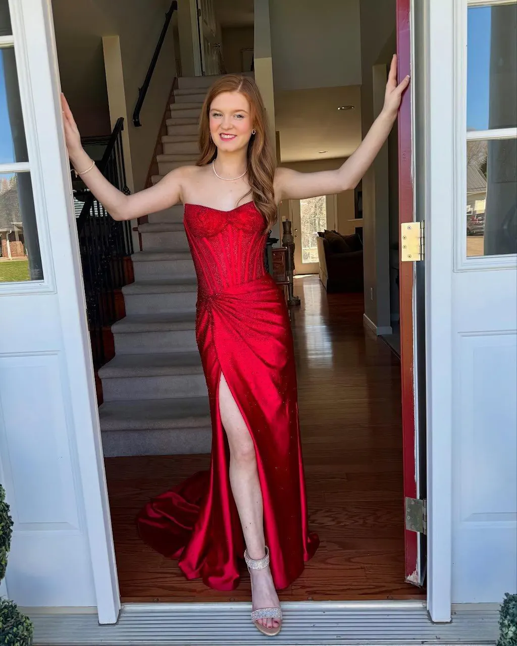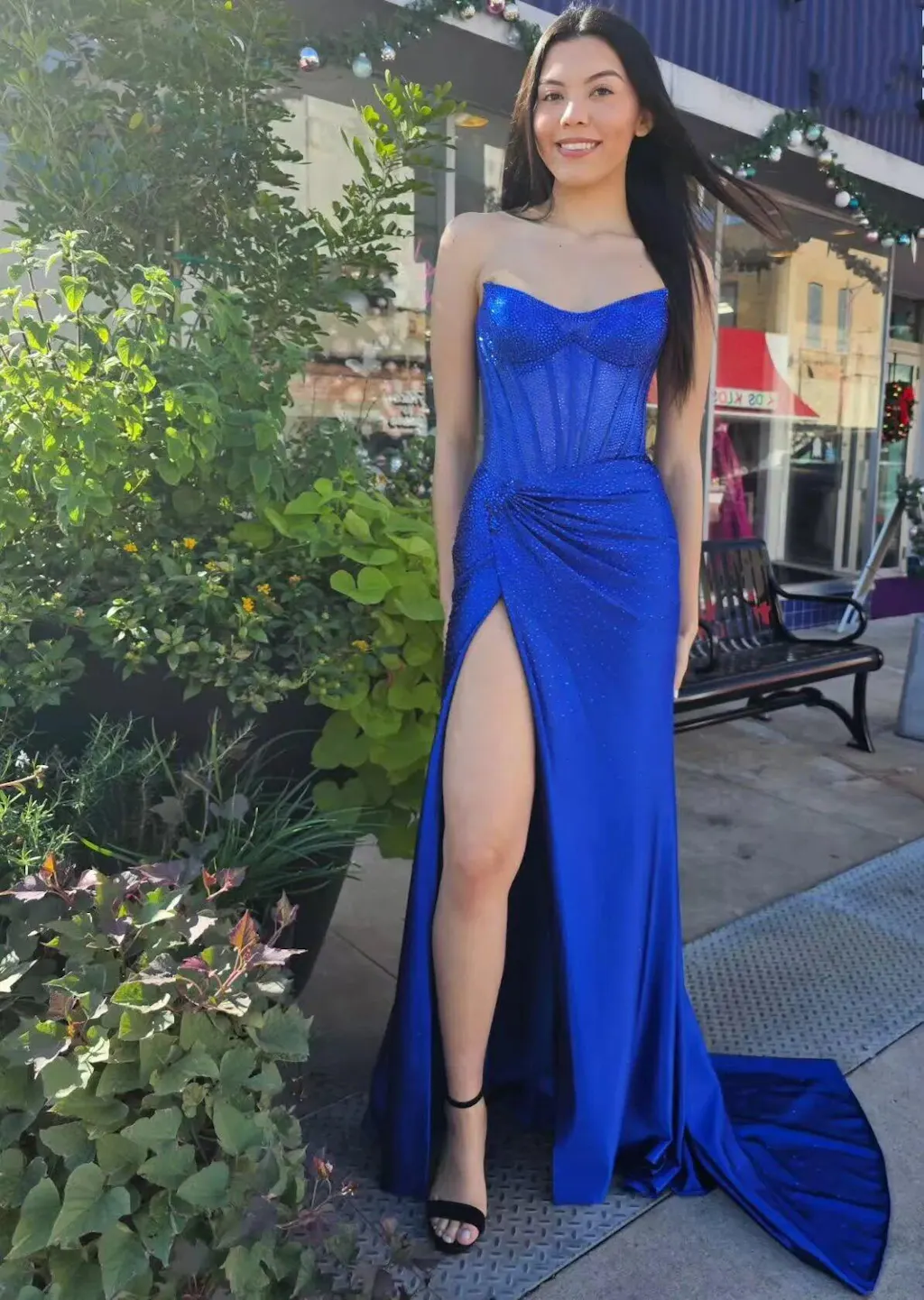 - Embellishment: Illusion Corset Bodice, Slit, Sequins