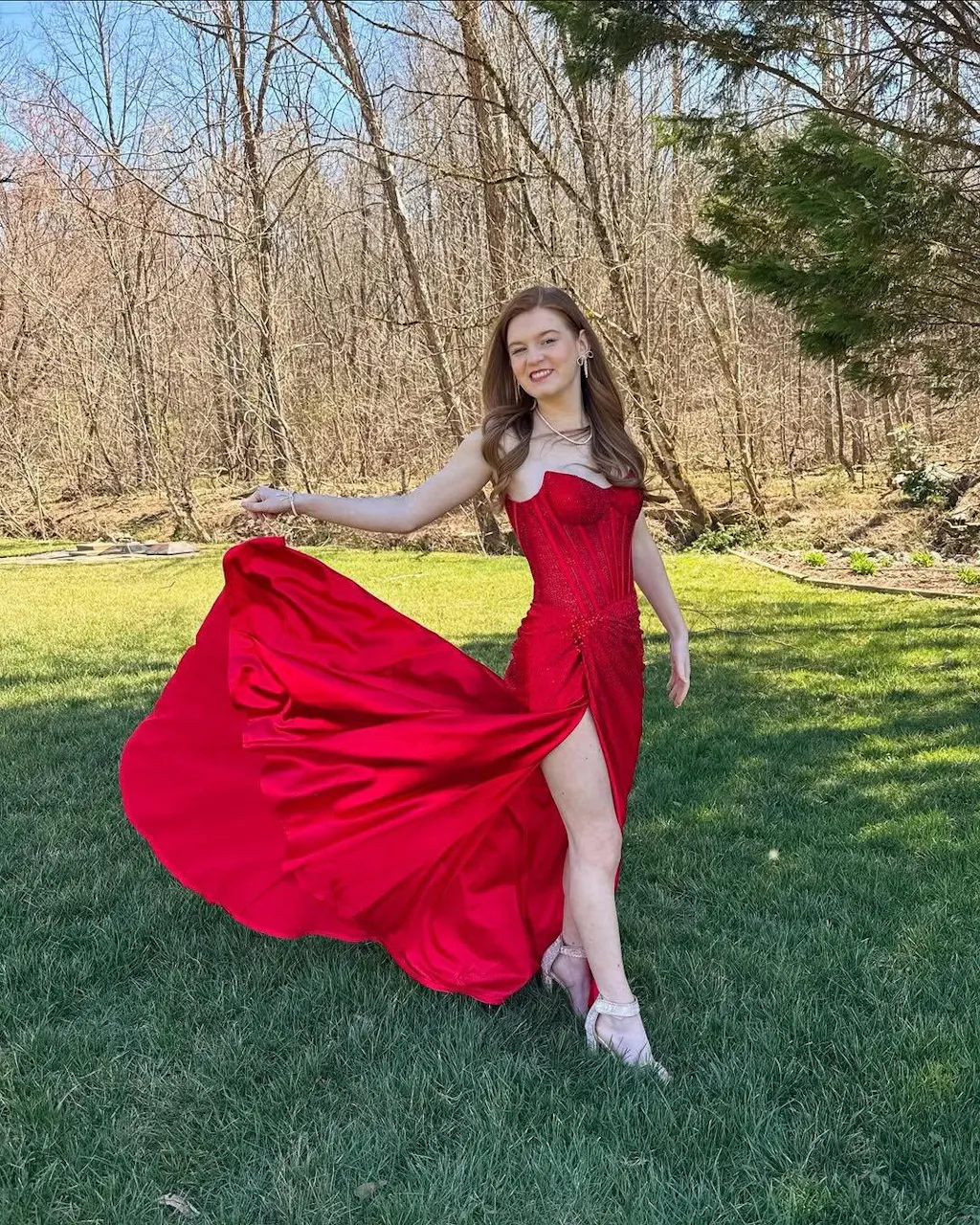 The V-neckline highlights your collarbone and adds an elegant touch, while the sleeveless design ensures comfort and allows for freedom of movement. The lace-up back not only provides a customizable fit but also adds a sophisticated element to the overall design. Embellished with an illusion corset bodice, a daring slit, and shimmering sequins, this dress embodies a perfect blend of charm and allure. Ideal for evenings filled with dancing or special occasions that call for a statement piece, this mermaid dress will make you the center of attention!