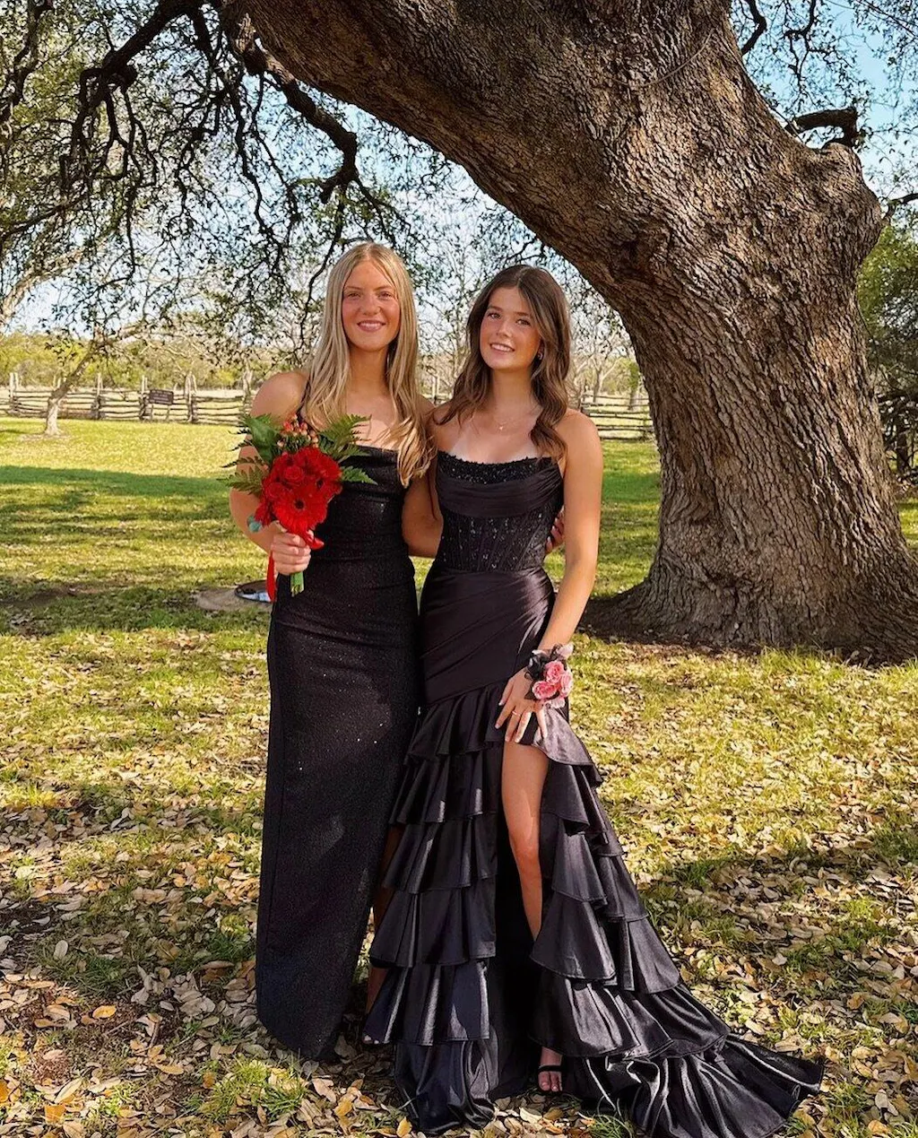 - Embellishment: Ruffles and Slit