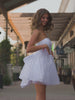 Lirael | White - A Line Strapless Glitter Tulle Ruffled Homecoming Dresses with Bow