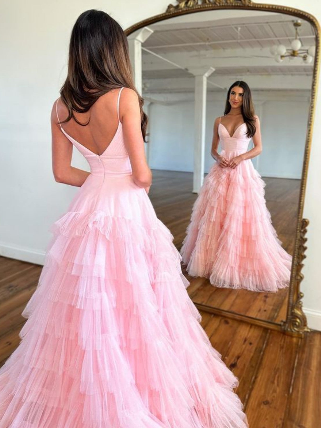 Alianna |A-Line Spaghetti Straps Tiered Tulle Prom Dress