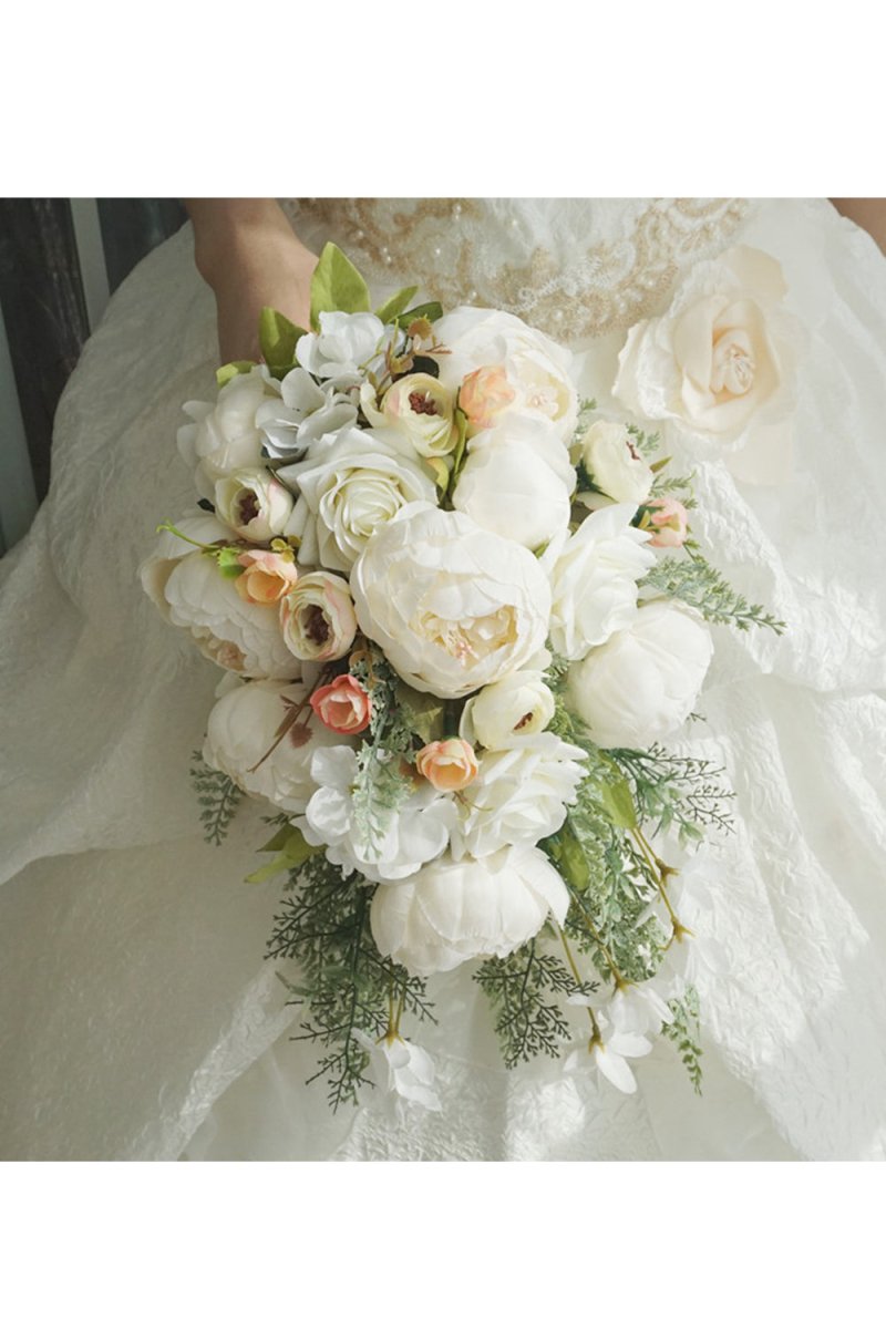 Artificial Peony Rose Cascade Wedding Flower Bouquets