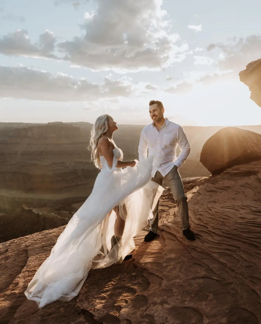 Introducing Kaydra, a stunning wedding dress that embodies grace and sophistication. Made with airy tulle fabric, its A-line silhouette and off-the-shoulder neckline create a romantic yet modern look. The subtle slit detail adds a touch of contemporary flair, ensuring both elegance and comfort on your special day.