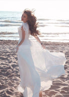 Chiffon A-Line V-Neck Short Sleeves Summer Bridal Dresses