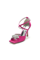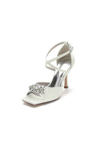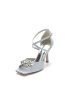 Elevate your look with these Crystal Buckle Square Open Toe Cross Straps Chunky Heels, designed to make a statement at your wedding or prom. With stunning cross straps and a chunky heel height of 9.5 cm, they add a touch of elegance and glamour. And the faux silk upper material and imitation pigskin sole ensure comfort. These heels will have you stepping into the spotlight with confidence, perfect for any glamorous occasion.