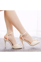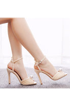 Step into elegance with the Elegant Pearl Peep Toe Stiletto Ultra High Heels, a stunning addition to any bride's ensemble. Featuring luxurious faux pearls and a sleek stiletto design, these heels are perfect for a wedding day that radiates sophistication and grace.