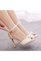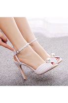 Elegant Pearl Peep Toe Stiletto Ultra High Heels