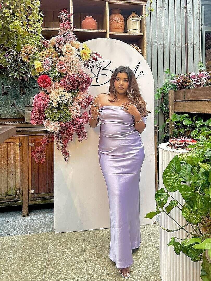 Make a statement in this off-the-shoulder sheath dress crafted from smooth satin. Its sleeveless design elegantly frames the arms, while the open back adds a touch of daring sophistication. Flowing to the floor, this gown combines modern simplicity with timeless elegance. Available in vibrant shades like red, orange, pink, white, lilac, and yellow, it’s perfect for prom nights, gala events, or special evening occasions. Subtle yet striking, this dress ensures every step exudes confidence and refined glamour.