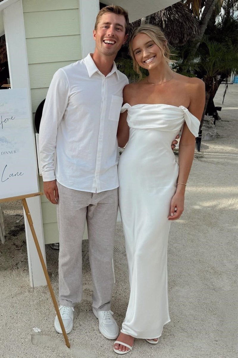 Finara | White - Off The Shoulder Sheath Satin Long Prom Dresses